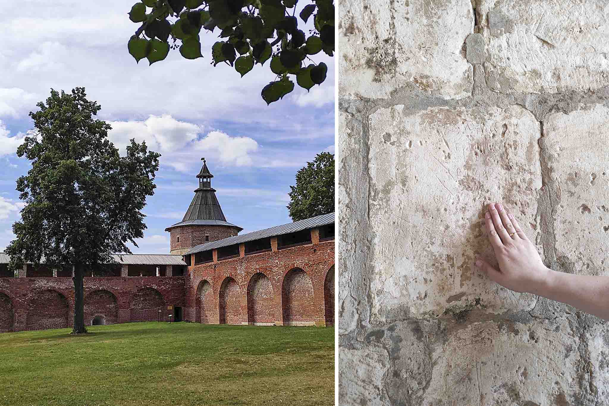 Кремль XVI века. Очень необычный — во-первых, «правильный», прямоугольный. Именно так строили итальянцы по своей классической технологии. Конечно, со времен основания Кремль и разрушался, и перестраивался. Но если хорошо попросите, экскурсоводы покажут вам камни в кладке монументальных стен, на которых до наших дней сохранились пятисотлетние надписи.