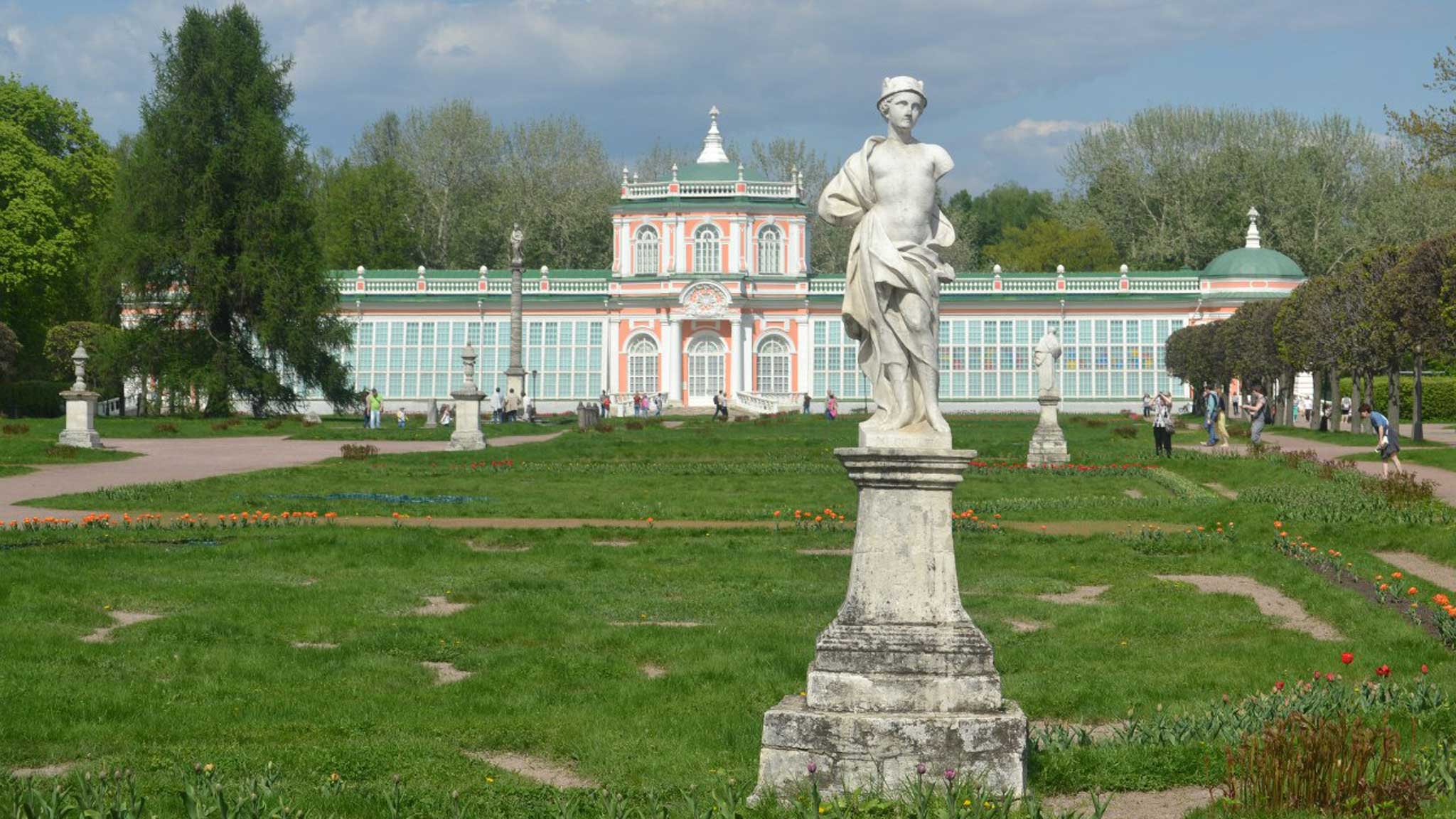 Оранжерея. Обратите внимание на ризалит — эта та часть здания, которая выступает за основную линию фасада. контрастное здание ярко выглядит на любом снимке. Как и прекрасная вы на этом фоне.