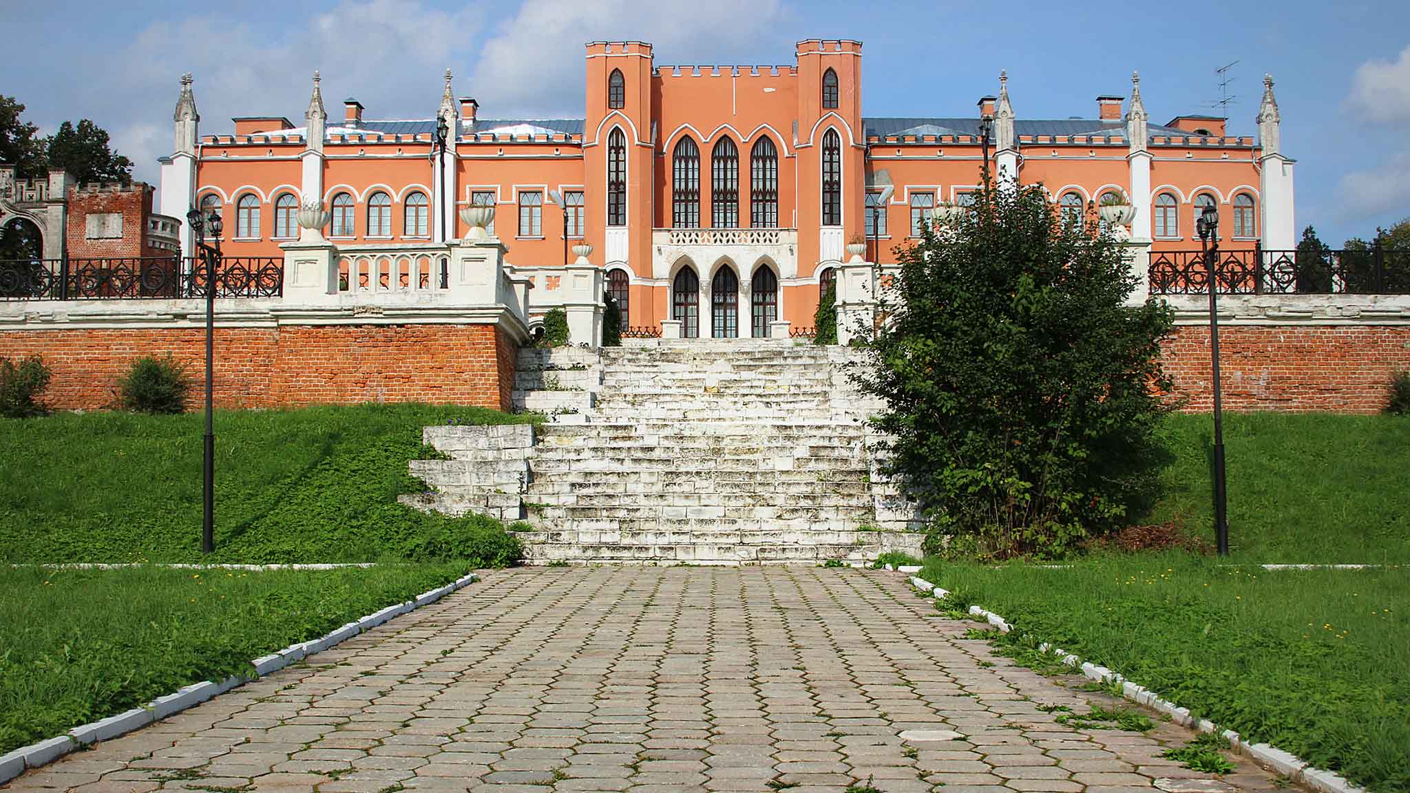Башни, бойницы и сторожевые сооружения — отличные образцы, отсылающие к редкой для России неоготике. Впечатляет и скульптурная композиция мраморных грифонов.