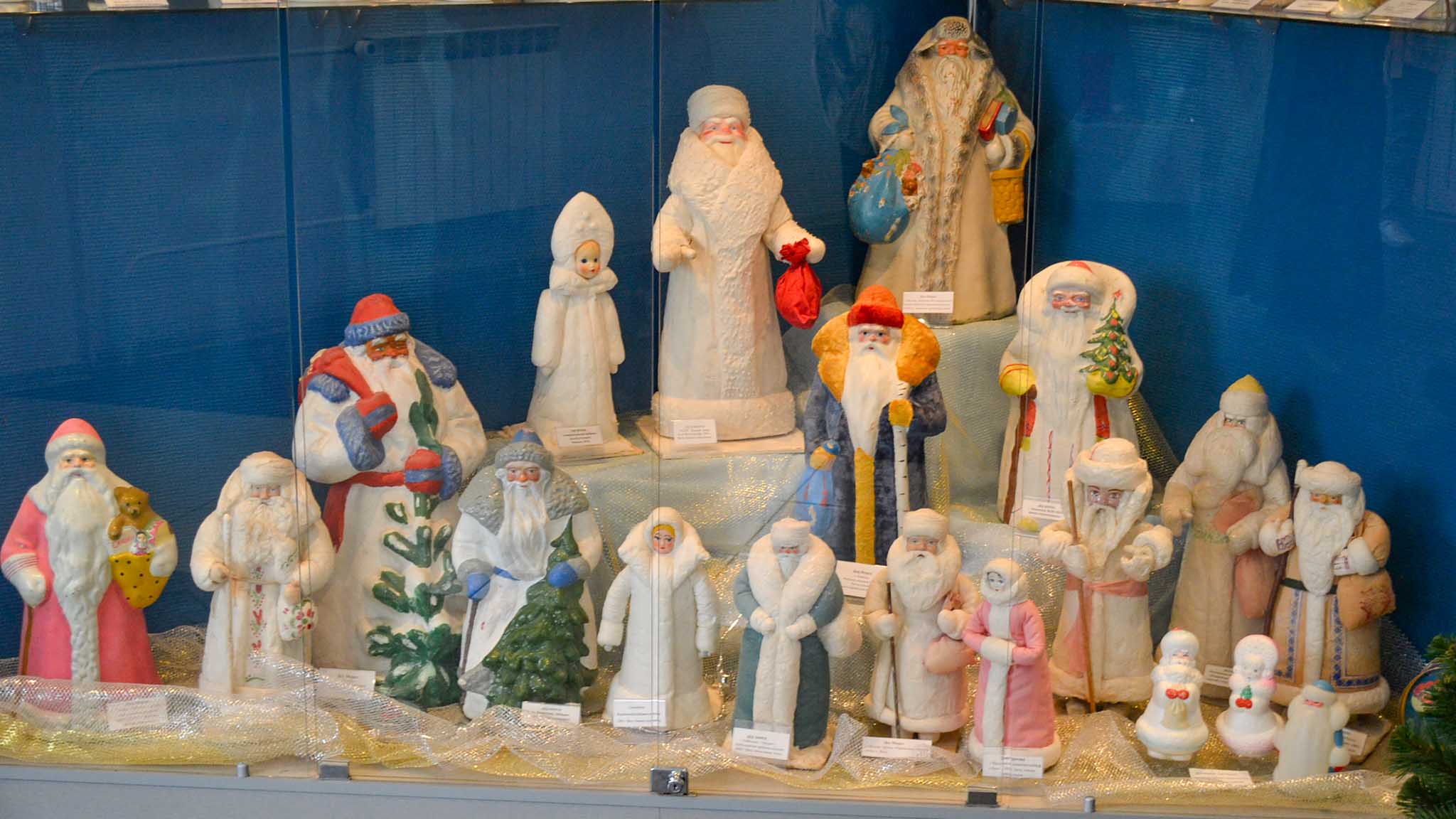 По елочным игрушкам можно буквально проследить историю страны. Во время войны появились аэростаты, самолеты, танки, солдатики, собаки-санитары… Зачастую фигурки мастерили сами — из военных погон или бинтов. После 1947 года игрушки стали мирными — налаживалось производство сказочных героев, стеклянных фруктов и овощей. При Никите Хрущеве, который был, как известно, страстным сельскохозяйственником, обязательным украшением на елке стала стеклянная золотистая кукуруза.