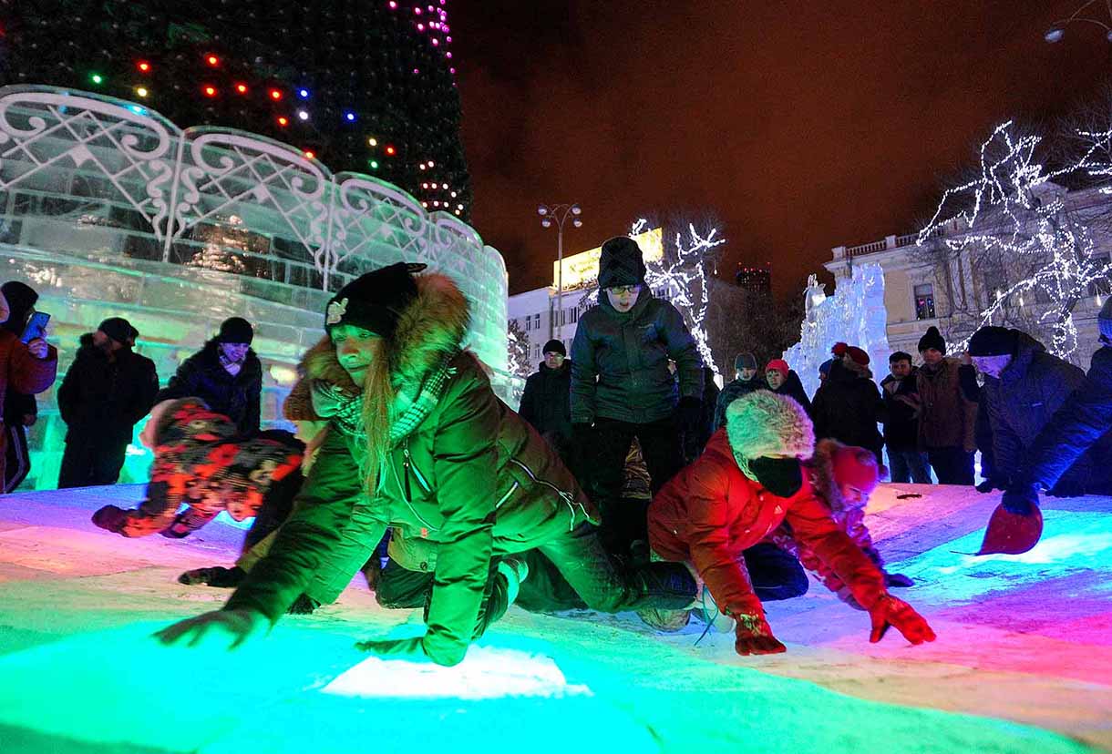 Ну а после наступления главного праздника страны – походы в гости: к родственникам и друзьям. И, конечно, на ледяную горку! С саночками. Или просто на «пятой точке» — вжих! Непромокаемых комбинезонов, как нынче, не было, поэтому все возвращались домой мокрые насквозь, но бесконечно счастливые.