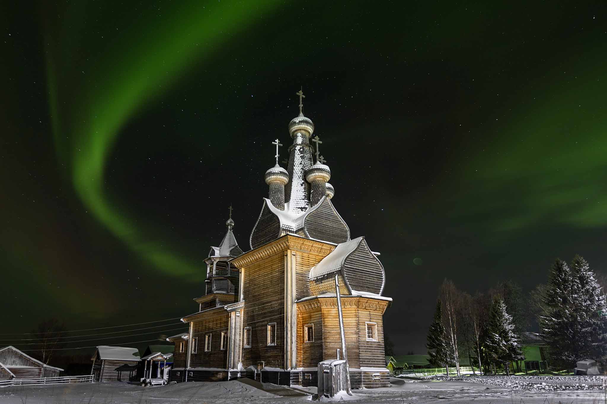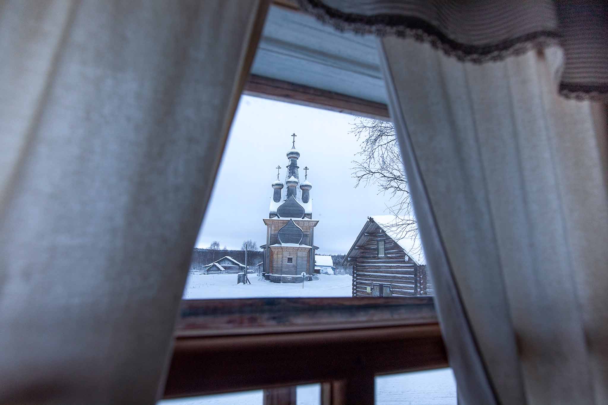 В храме пахнет свежим деревом, хотя процент сохраненной старинной древесины большой. Такой эффект от прохладного северного климата. Священника нет. В воскресенье утром женщины сами открывают храм, молятся.