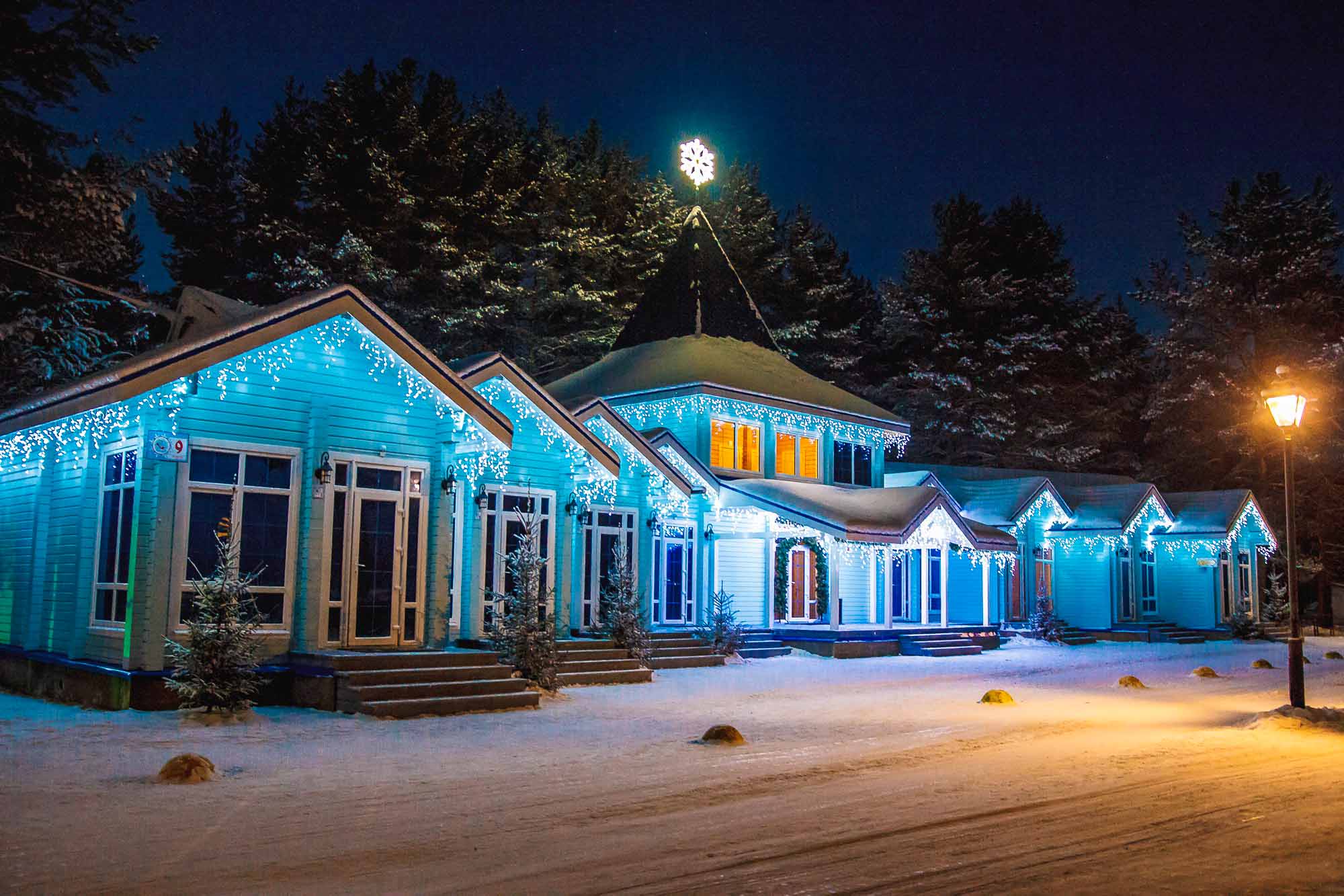 Самый очевидный выбор — коттеджи прямо в вотчине Деда Мороза.