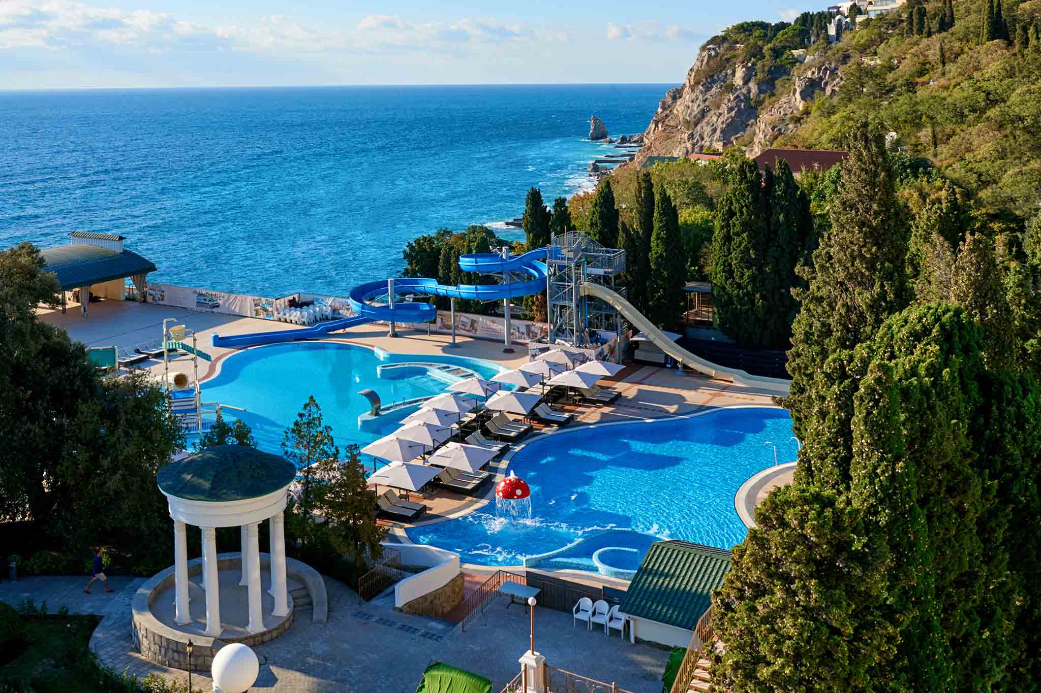 В окрестностях отеля вас ждут роскошные парки, дворцы и знаменитое Ласточкино гнездо. Вы наверняка не раз видели его на фото или в кино. Более романтического места на полуострове нет. Это визитная карточка не только Ялты, но и всего Крыма. Ласточкино гнездо похоже на миниатюрный средневековый замок. Расположен на отвесной 40-метровой скале Авроре прямо над морем. На территории замка можно прогуляться по панорамной террасе и небольшому парку, посетить культурно-выставочный центр и сделать множество потрясающих панорамных снимков.