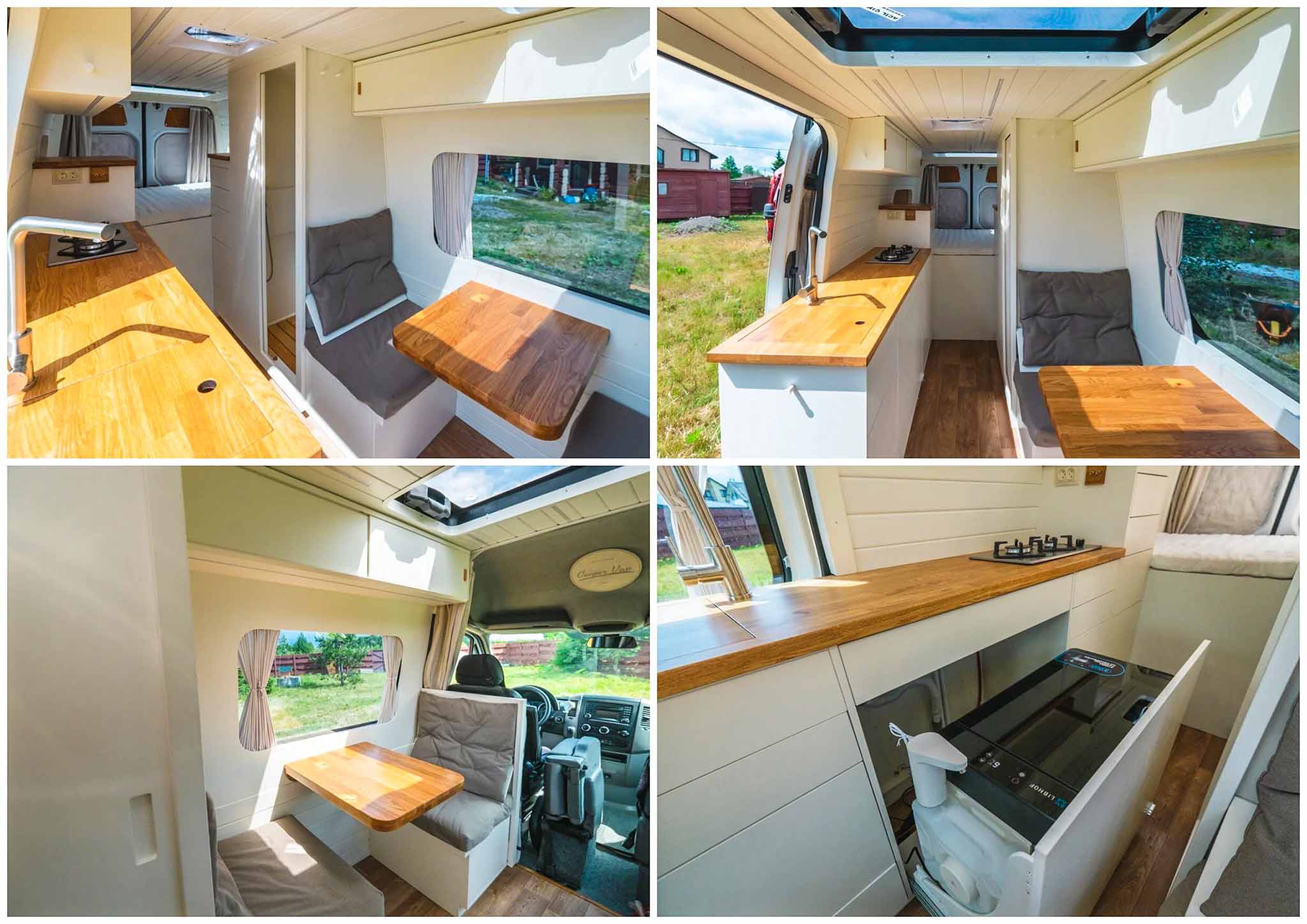 В обустройство своего вэна Сергей и Ольга вложили 800 тысяч рублей. Это только расходы на материалы. Все делали сами. Как идут работы, писали в Instagram. На фотки натыкались любители автопутешествий и просили сделать им такой же. Так молодые люди и решили запустить бизнес. Нашли в команду еще людей, вместе сняли цех и начали строить вэны.