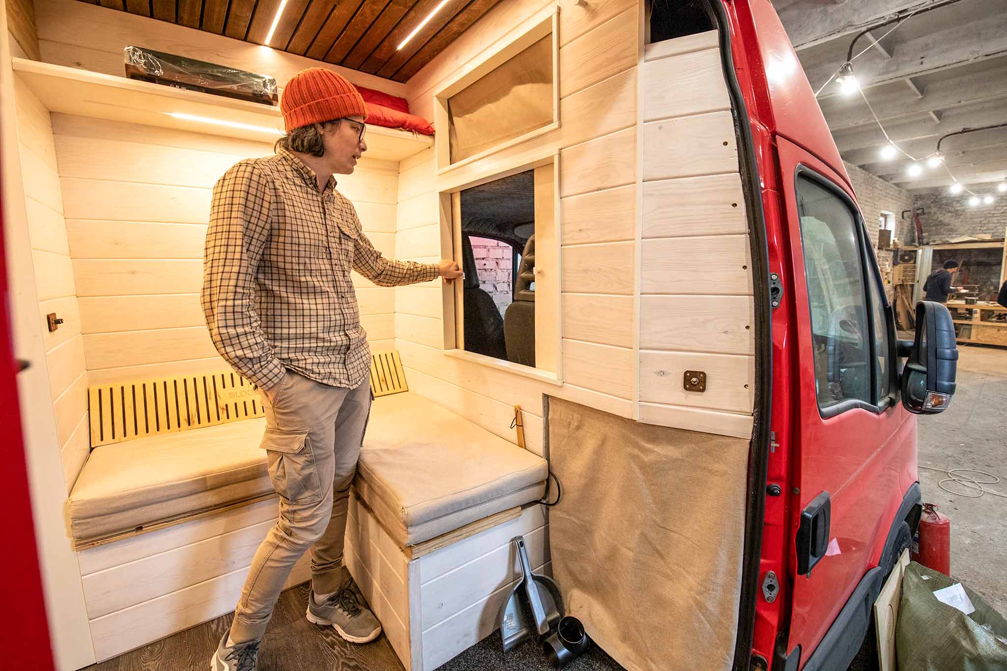 — Так ты не привлекаешь лишнее внимание на дороге и в городе, — объясняет мастер. — В России это может и не критично, но за границей в некоторых странах дома на колесах под запретом в центре городов, а в других нужно покупать особые разрешения на стоянку. В Испании вэны очень любят грабить. Маскировка!
