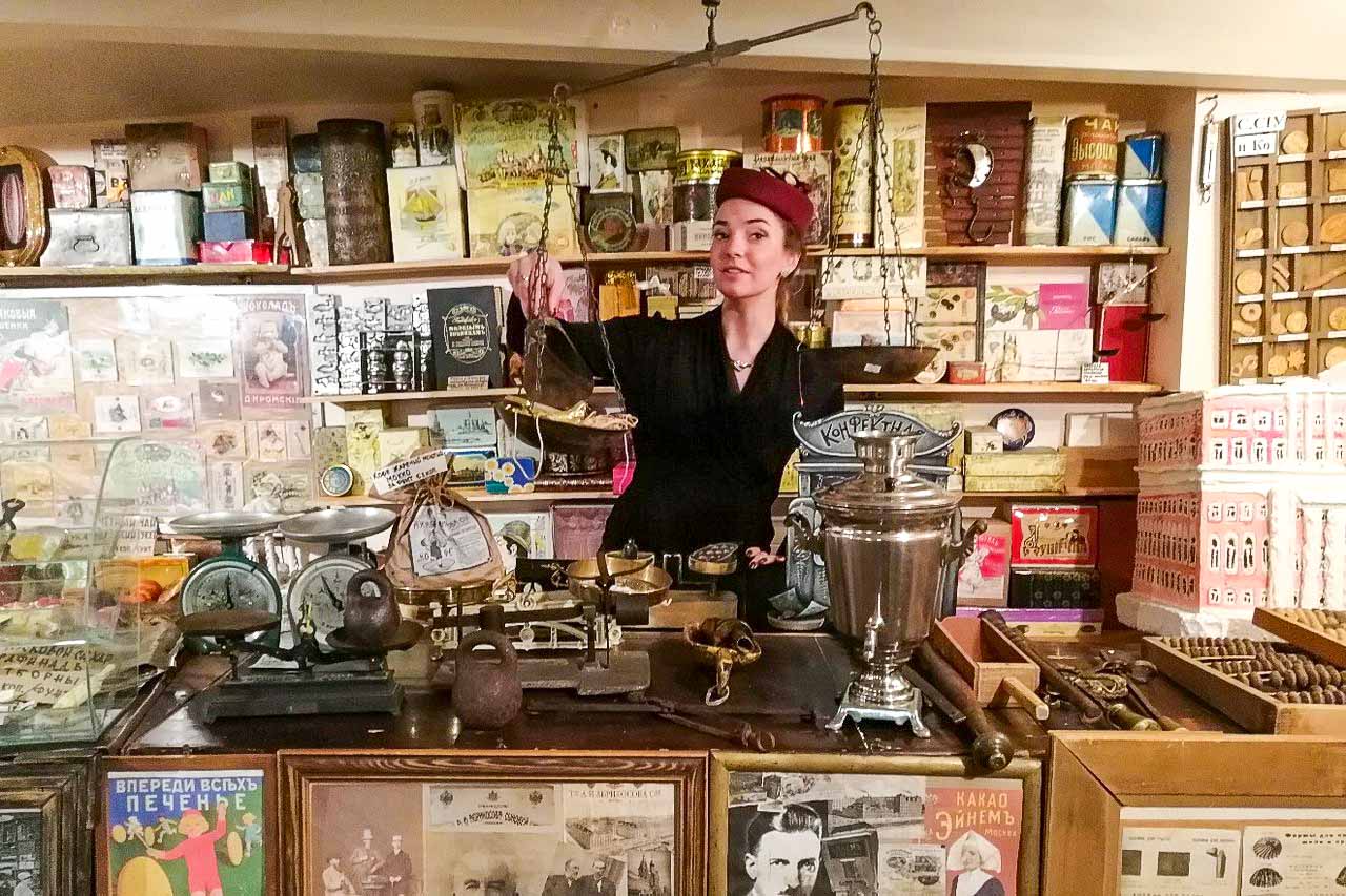 Экспонаты этого музея — неосязаемы. Это рецепты, коллекция которых постоянно пополняется в кулинарных экспедициях и архивах, и технологии русской кухни. Ну и, конечно, временными экспонатами (пока их не съедят) можно назвать и блюда, которые гости приготовят на мастер-классах. Музей ориентирован исключительно на экскурсионное обслуживание, проходящее порой практически в формате мини-спектакля. Важный момент: здесь есть программы, рассчитанные на малышей от двух лет.