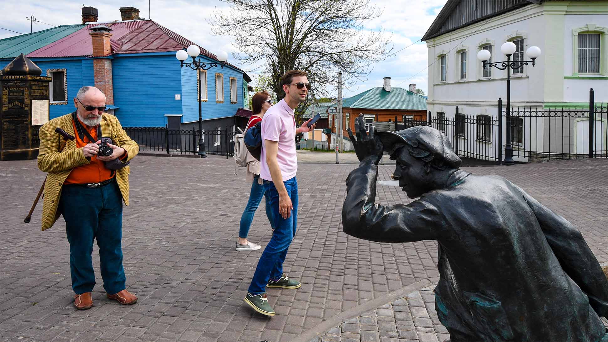 Старая часть города — это концентрация древних храмов, живописных видов и городских скульптур. Пешеходную Георгиевскую улочку, например, украшает бронзовый пожарный, в руках которого — действующий ручной пожарный насос! Нажмешь на рычаг — из шланга течет вода. Или вот композиция «Филер и Шалопай». Филер (он же сыщик) глядит в монокль на мальчишку, который, в свою очередь, высматривает у прохожих ценные вещи.
