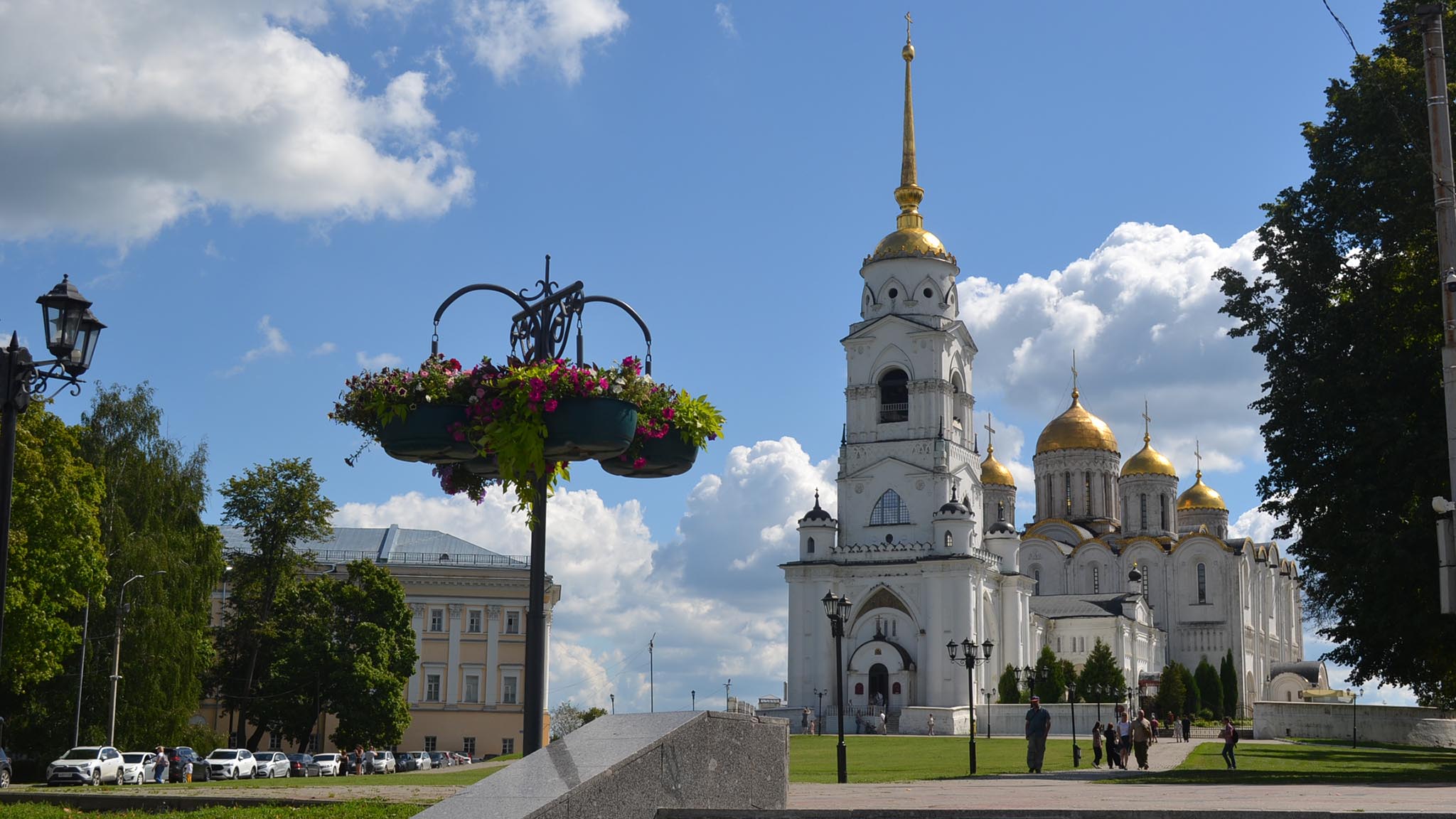 Успенский собор, когда-то главный храм Владимиро-Суздальской Руси, виден уже от вокзала. Еще бы: для его постройки (1158–1160 годы) князь Андрей Боголюбский, задумавший перенести столицу Северо-Восточной Руси из Суздаля во Владимир, выбрал самую высокую точку города. С тех пор собор не раз прихорашивался и подрастал, пока не дорос до попадания в списки памятников наследия ЮНЕСКО.