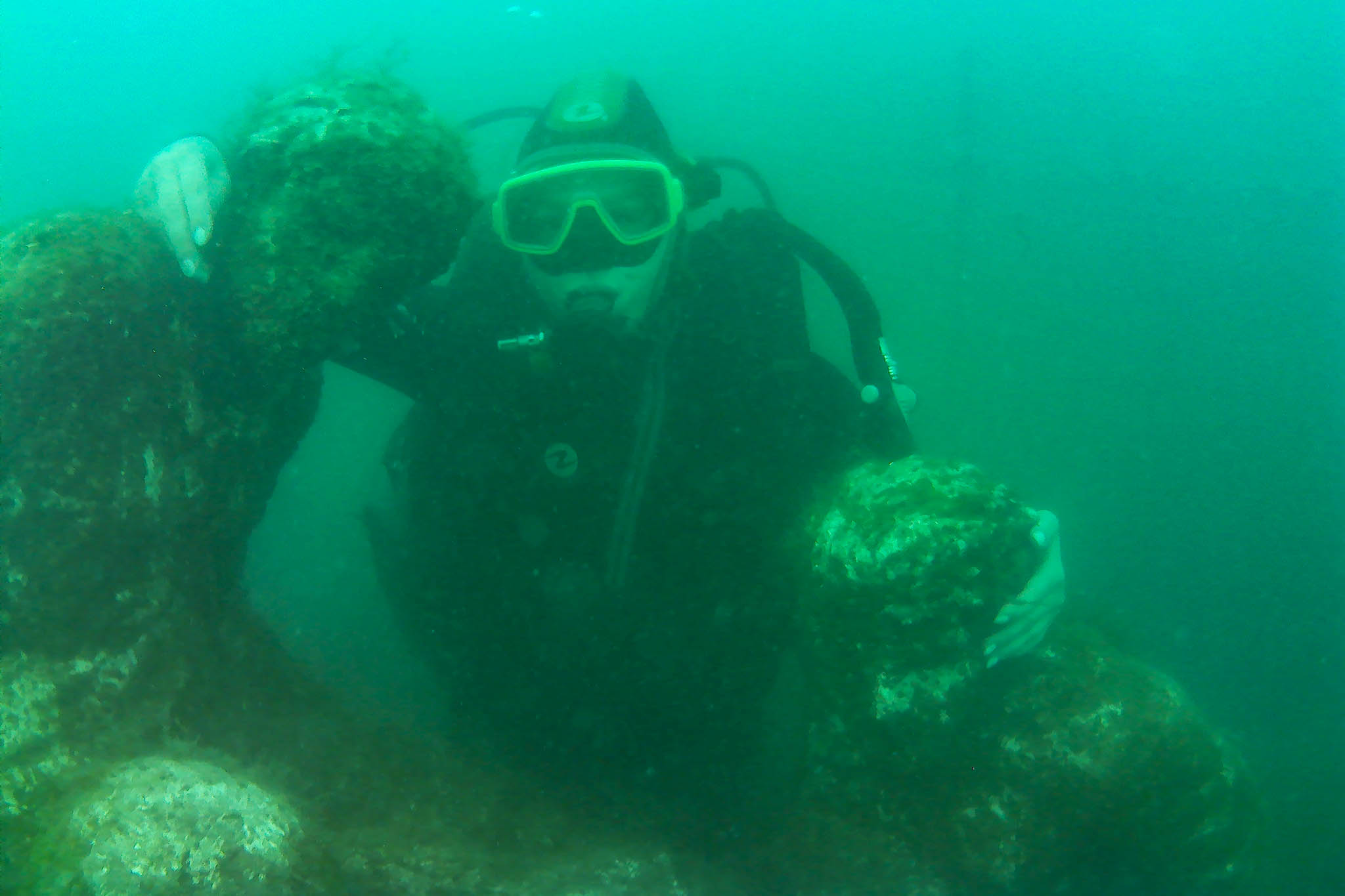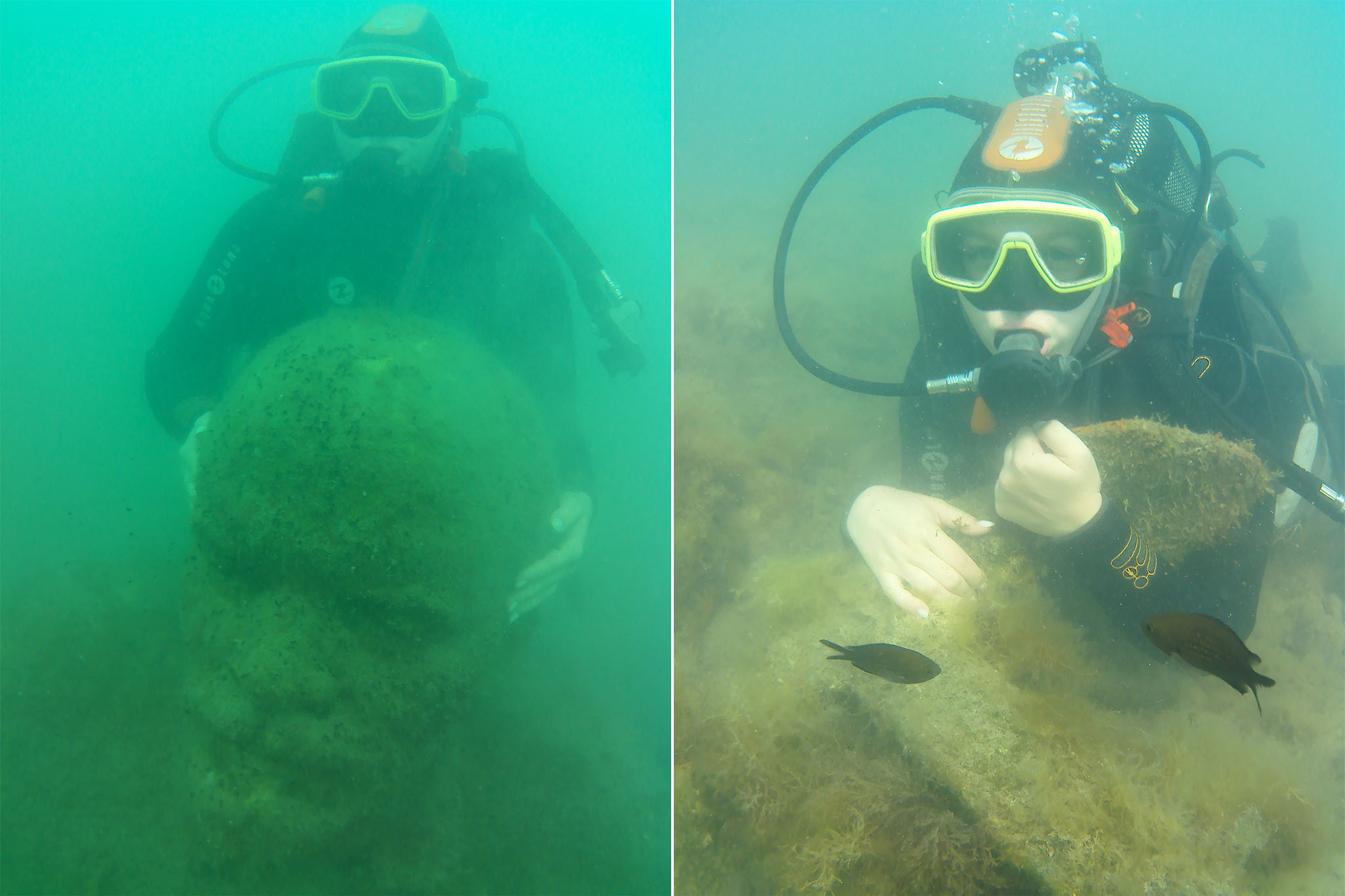 — Мы заказали эти каменные фигуры футболистов и погрузили их на дно как раз тогда, когда спортсмены устроили драку в московском кафе пять лет назад, — рассказал уже на суше Павел Гуревич. — И эти фигуры пользовались большой популярностью у начинающих дайверов — каменных футболистов больше нигде в России не встретишь.