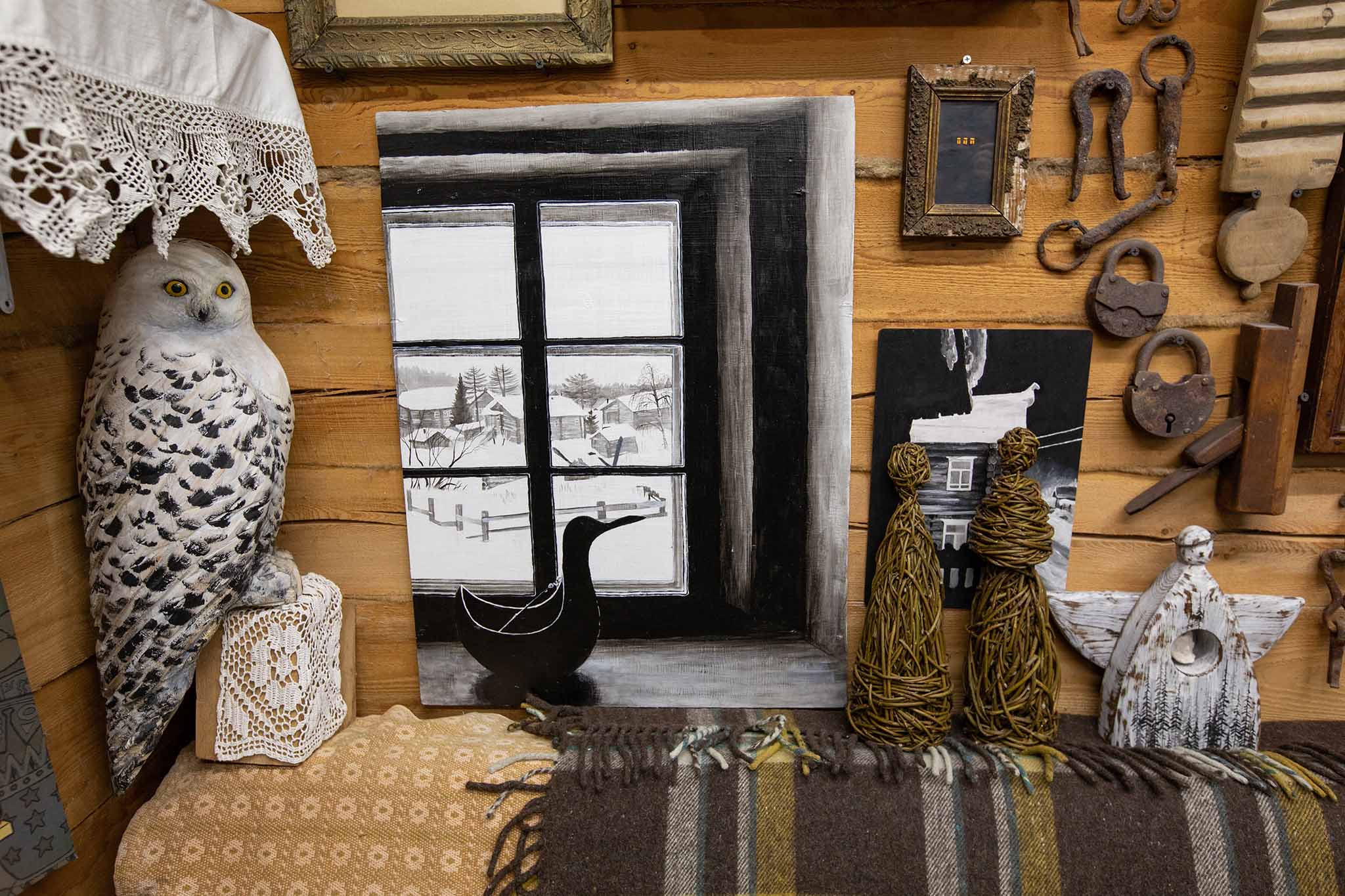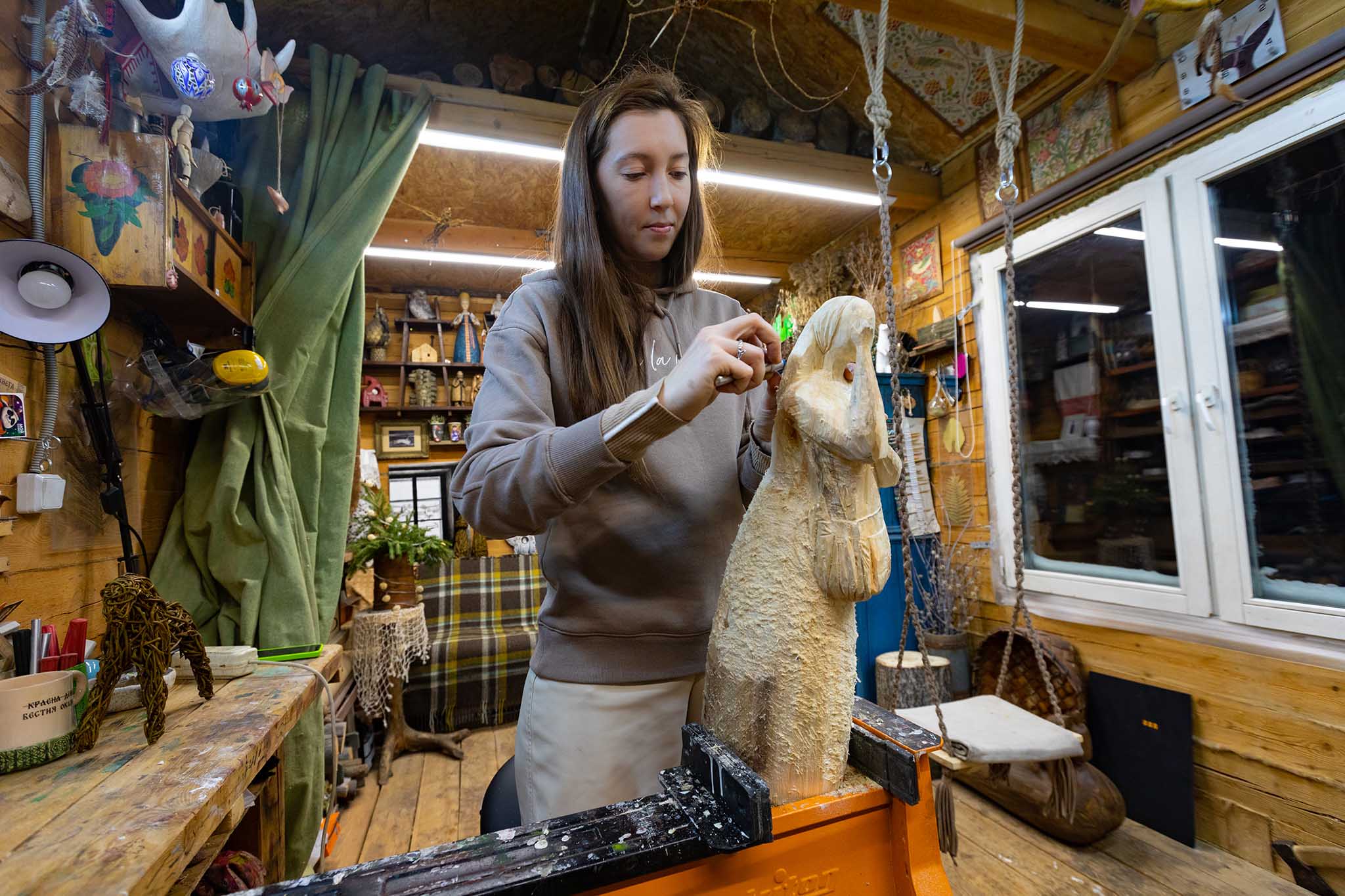 — Я всегда домашняя присушка была. Мне как выпадало свободное время и возможность, я сразу ехала домой, — Алена ведет нас в мастерскую, под ногами крутится самая счастливая собака на свете Соня. — Раньше я переживала, когда мне говорили: понятно, что ты из деревни: окаешь и токаешь. А сейчас я стараюсь использовать уходящие слова, наш пинежский диалект. В соцсетях бывает замечания делают — милочка, слова такого нет. А оно есть! Мы так говорим, мне так нравится, поэтому я так пишу.