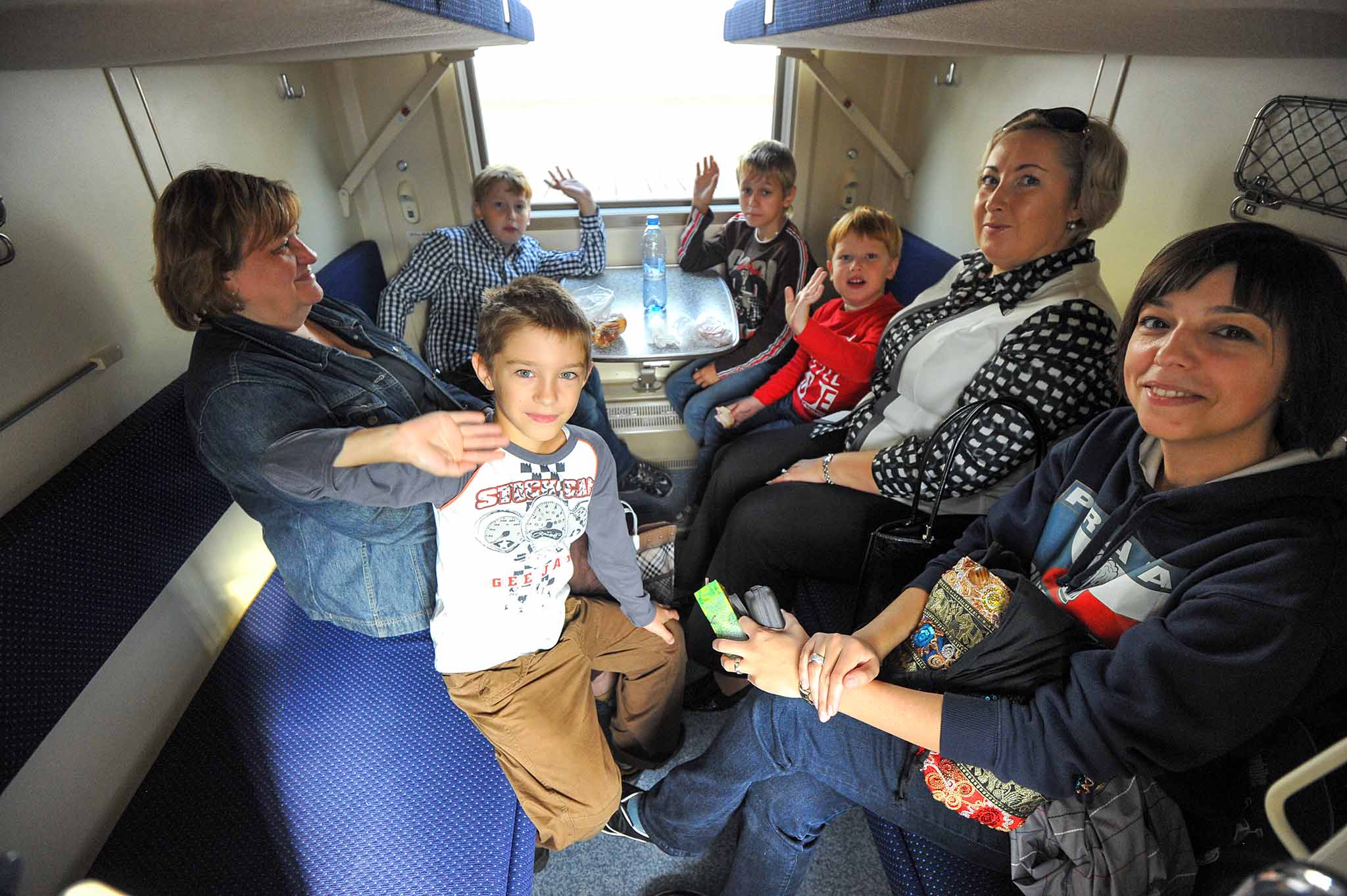 Детишек ехало полвагона! Зря я переживала, что дочка в пути заскучает. Второе опасение — что с полки свалится — тоже оказалось напрасным: выручила ручка-барьер. А соседи своих мальчишек подстраховали бортиками-сетками для поезда, которые крепятся на ремнях между полками. Подходят и для нижней, и для верхней, в интернете можно купить за 700 рублей. Оказалось — нужная вещь!