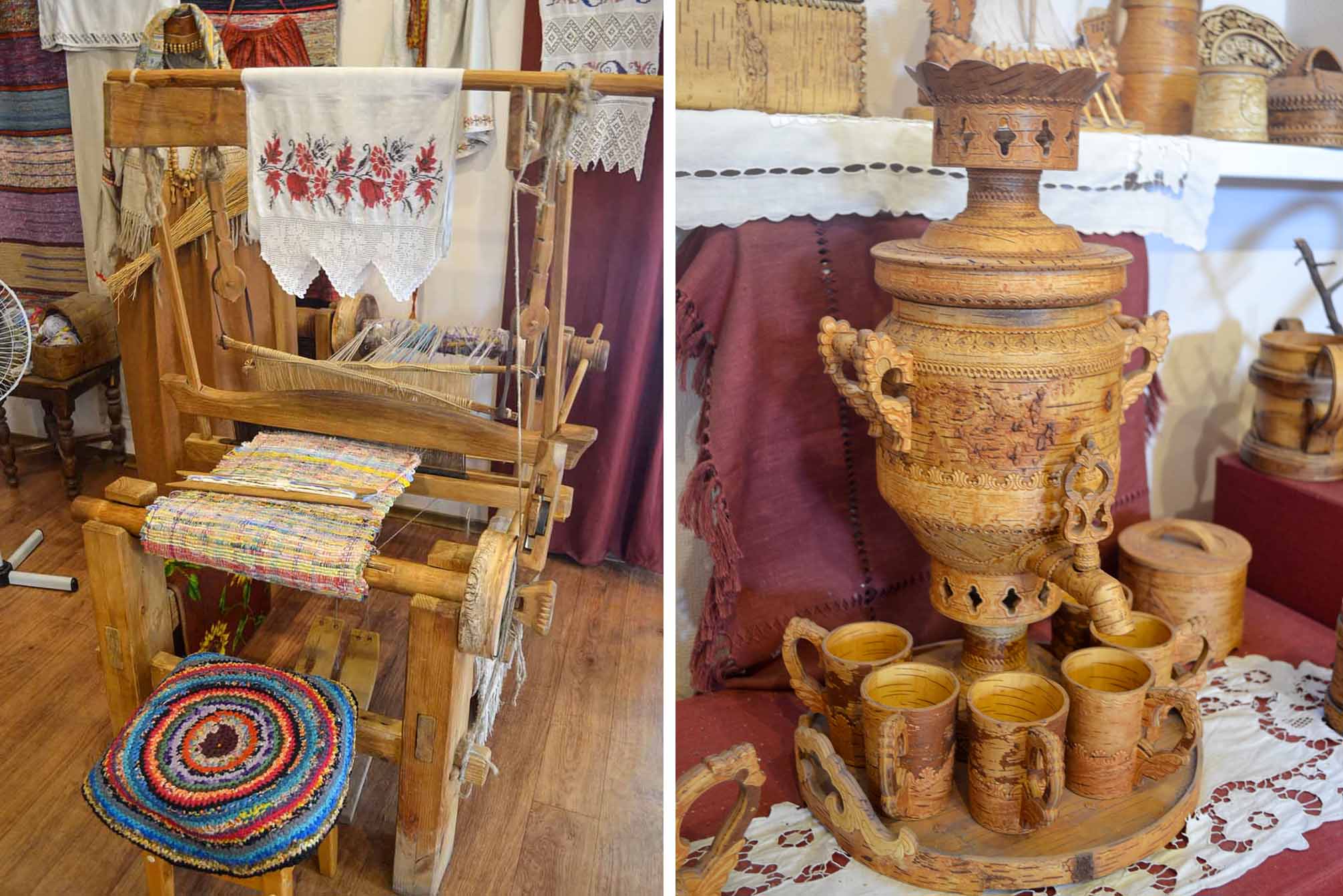 Современные мастера делают из бересты шляпы и бейсболки, ложки и самовары — между прочим, вполне рабочие: можно заправить горячей водой и затем наливать чай в берестяные кружки. Кстати, в музее проводят мастер-классы по изготовлению изделий из бересты.