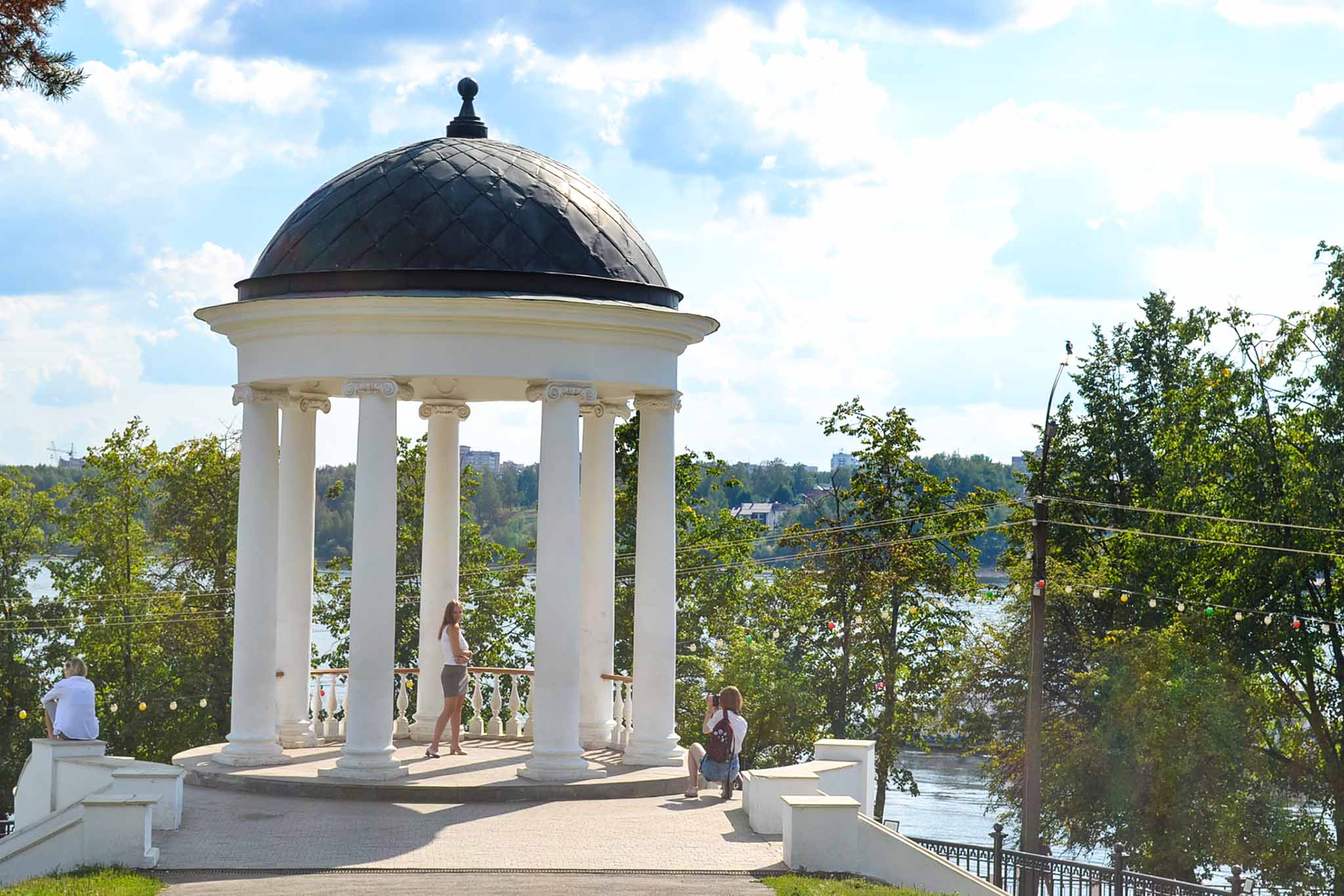 Над набережной возвышается «Беседка Островского». Построенная уже в советские годы, она напоминает о том, что писатель очень любил Кострому и ее окрестности. Туристы обожают фотографироваться в беседке-ротонде на фоне растекающейся внизу Волги.
