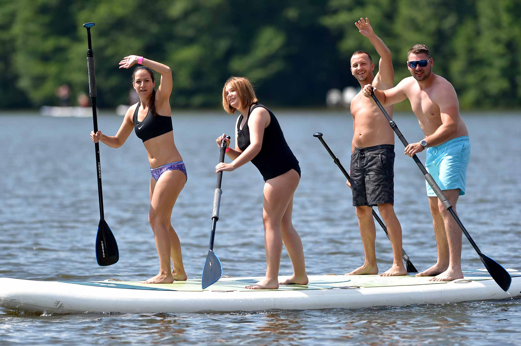 На пляже предлагали катание на «бананах» и «таблетках», прогулки на SUP-бордах. Последние пользовались наибольшей популярностью. За час катания с инструктором просили 2 тысячи рублей. И люди стояли в очереди.