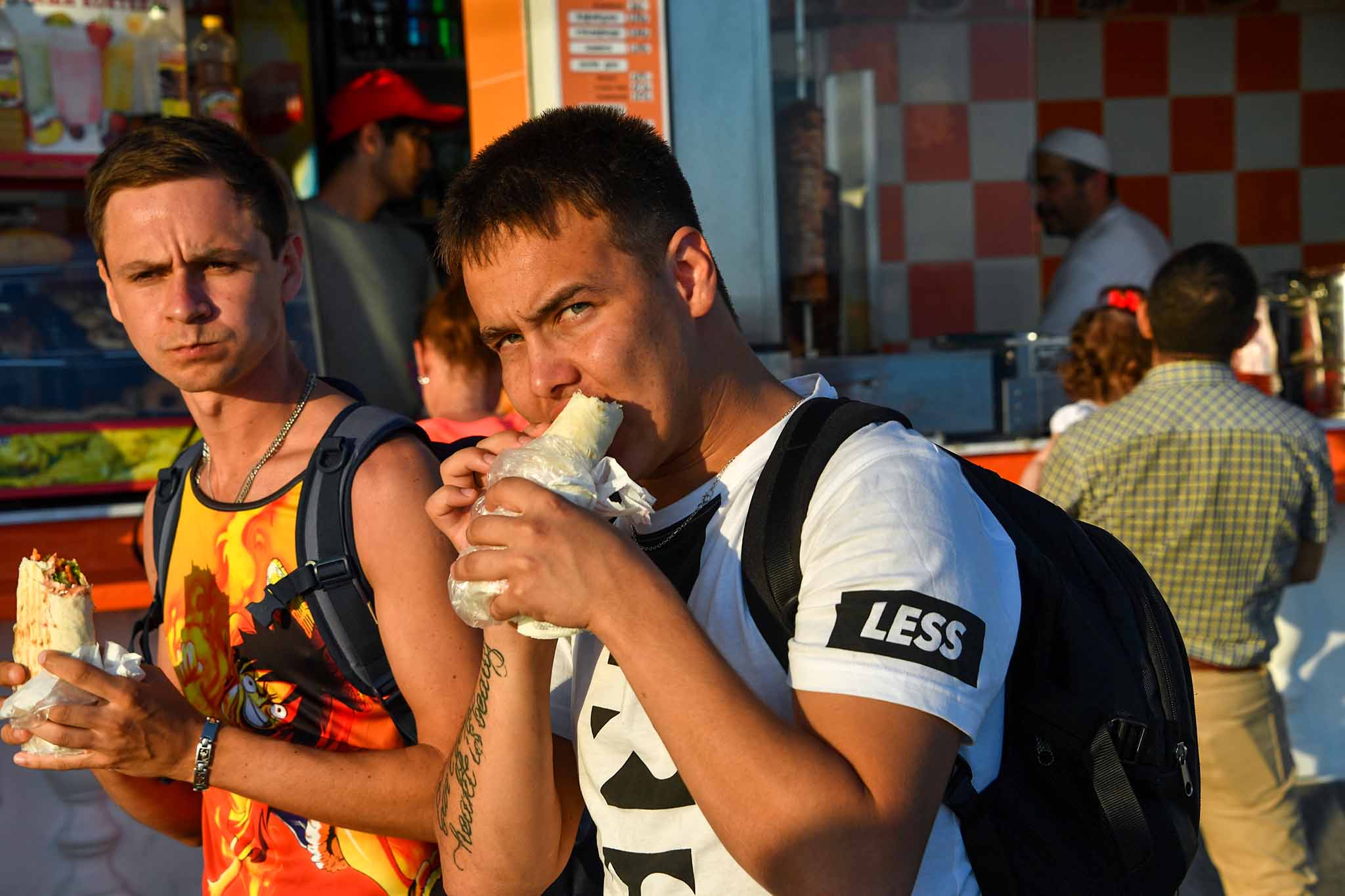 Но самая популярная еда на курорте – шаурма. Очередь у киосков с фаст-фудом – как на концерты популярных артистов. То есть люди стоят по полчаса, чтобы взять любимую еду.