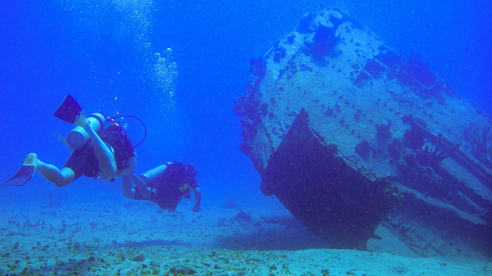Вблизи античного городка Херсонес в черте Севастополя находится одно из самых популярных мест для дайвинга. На глубинах до 4 метров здесь располагается затопленная часть древнего города, но спустя века она оказалась полностью размытой. Однако, на дне еще сейчас можно найти (или попытаться) античную посуду, а также осколки свинцовых пуль времен войны. Это место больше подходит начинающим дайверам и входит в экскурсионные поездки большинства дайв-клубов города.
