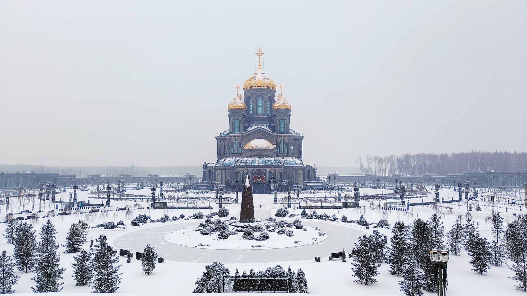 Кубинка. Главный храм Вооруженных Сил, рядом — музей Великой Отечественной «1418 шагов к Победе» (столько дней длилась война). На площади вокруг храма устраивают исторические реконструкции и концерты.