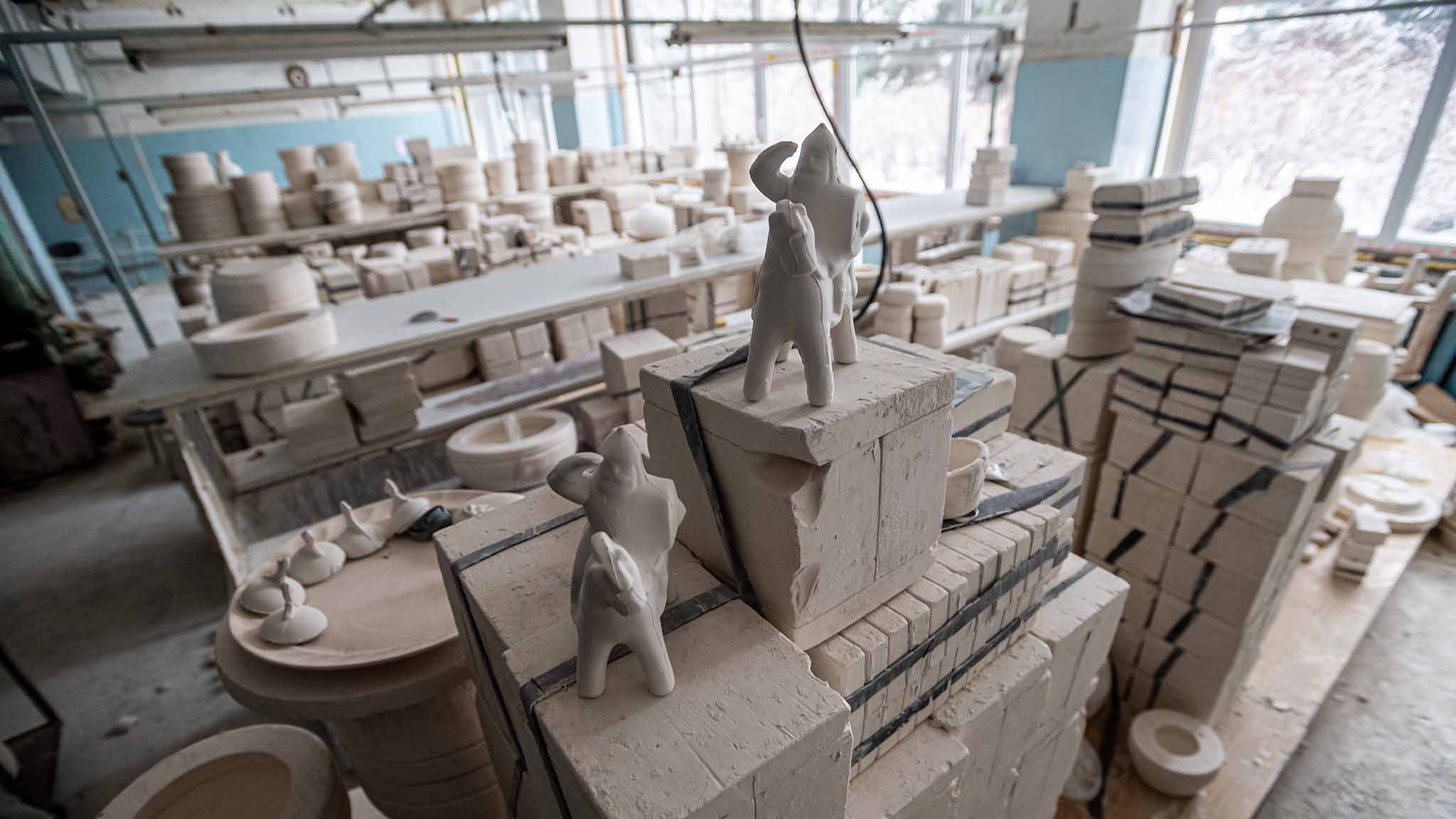 Выходишь из электрички на станции Гжель — и шагаешь по проторенной тропинке куда-то вглубь снежного поля. Крыши частных домов до сих пор в зимней спячке. Неплодородная земля, совершенно обычная природа… Что заставило людей издревле селиться здесь? Глина. Она и накормила, и прославила.