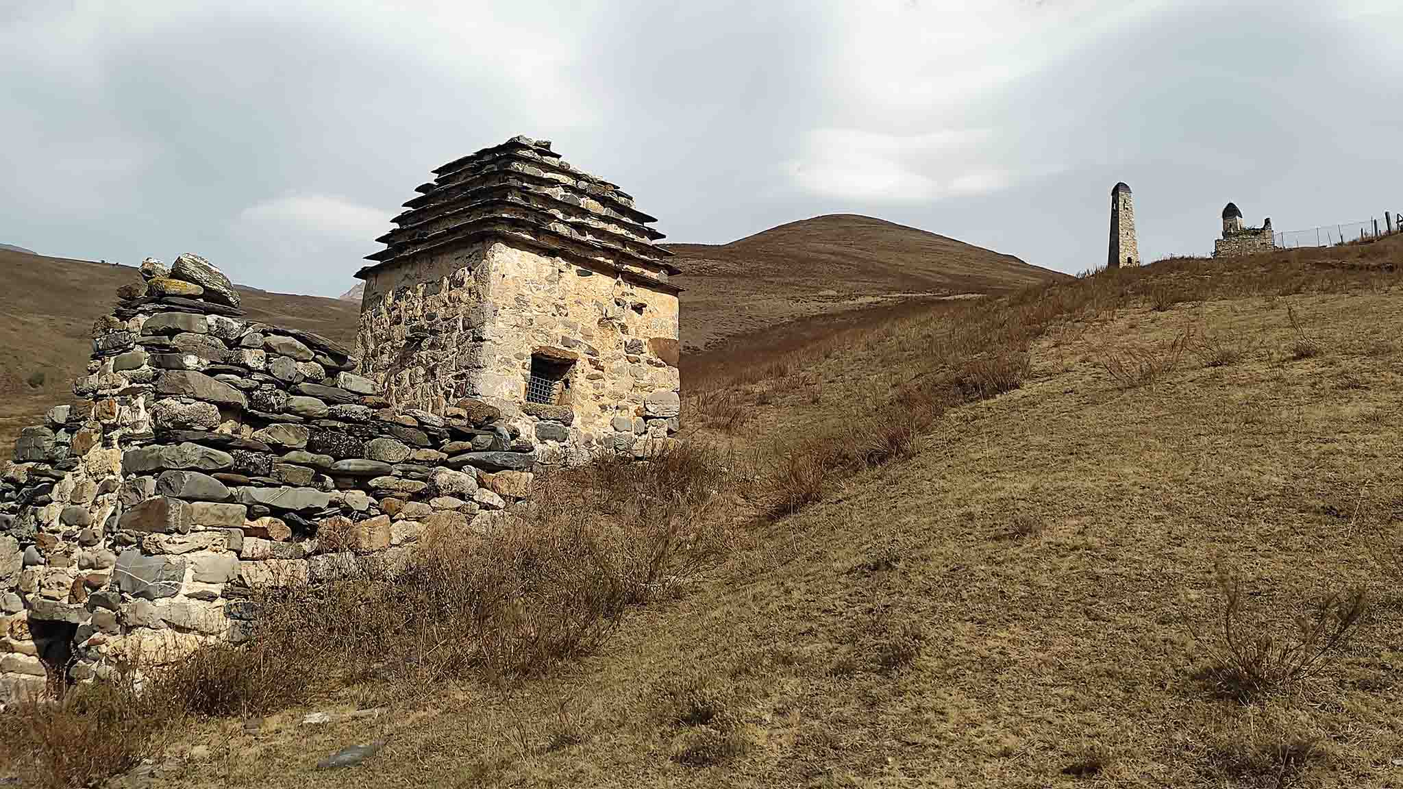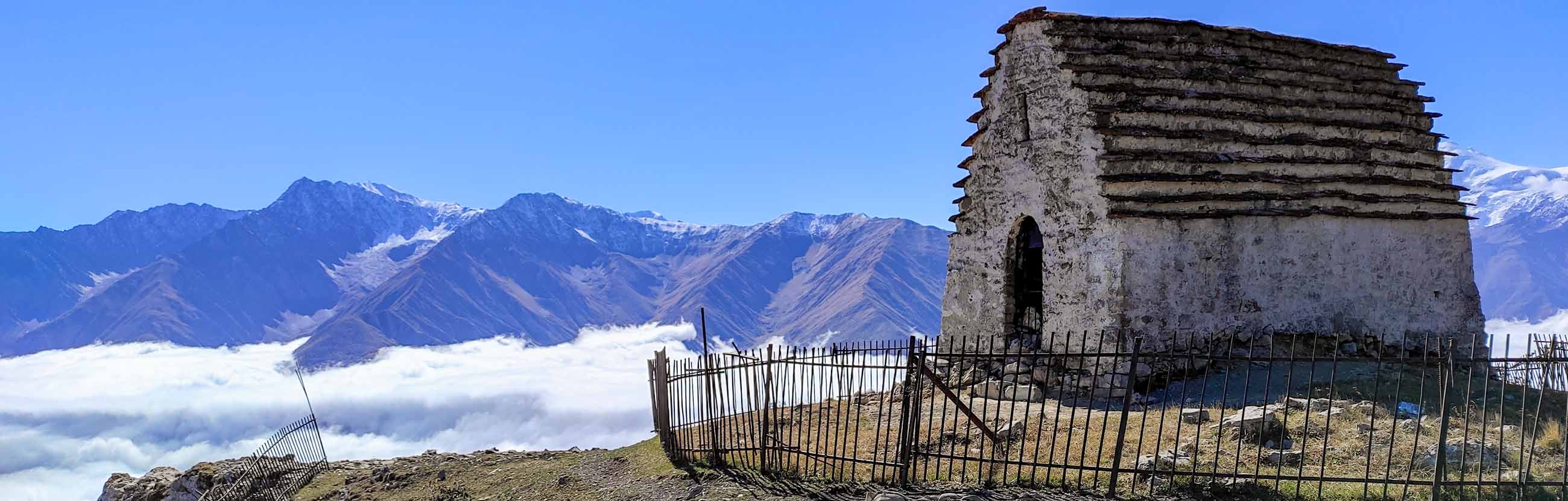 Ингушский «город мертвых» находится на холме, над руинами старинного аула Шоани в Джейрахском районе, недалеко от границы с Грузией. Останки усопших располагаются в выдолбленных в грунте могилах-пещерах, которых здесь около трехсот. От Шоани отлично видна самая высокая гора Ингушетии — Шан (4451 м). Местные жители называют ее Шанлоам, что переводится как «ледяная гора». На высокой вершине круглый год лежит снег. Белая шапка Шана резко контрастирует с растущими на склонах соснами и зелеными склонами, на которых пасутся овцы.