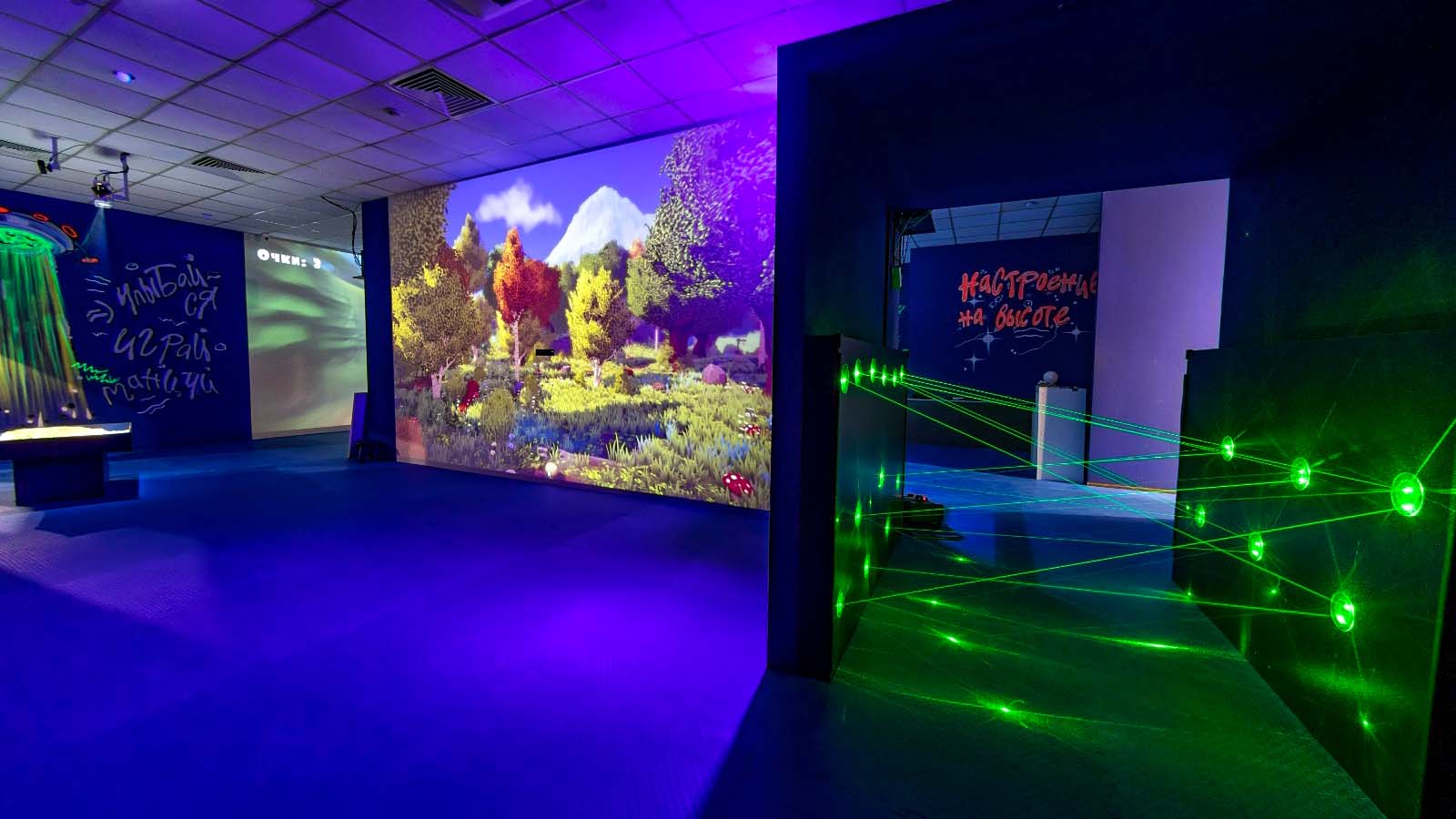 Это интерактивная комната, которая на время праздника становится ареной приключений для именинника и гостей. Стены и пол украшают экраны-проекции, с которыми можно взаимодействовать. Есть квесты, ведущий сопровождает детей на протяжении всей программы. Игры способствуют развитию памяти, нестандартного мышления и умения работать в команде. Прошедшим все испытания ребятам под силу и электрическую схему собрать, и стиральную машину починить, и волшебное зелье сварить. Есть красивые фотозоны, выделяется время на торжественную часть и вынос торта.