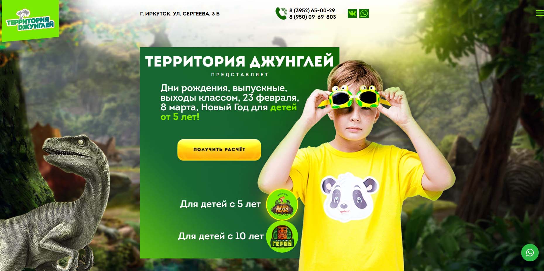 | Сайт и соцсети | irk.wow-land.site, irkutsk.park-kids.ru, ВКонтакте |