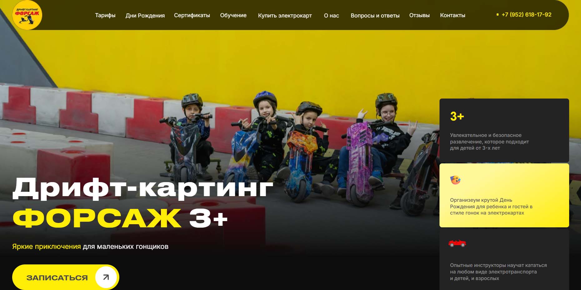 Приключения для маленьких гонщиков возможны начиная с трехлетнего возраста. В рамках празднования дня рождения предлагают программу общей продолжительностью 2 часа. Зона для чаепития включена в стоимость. За столом могут разместиться до 16 человек. На празднике предполагаются захватывающие заезды, в том числе, можно устроить гонки большой компанией. Во время катания инструктор проведет конкурсы, связанные с гоночной тематикой.