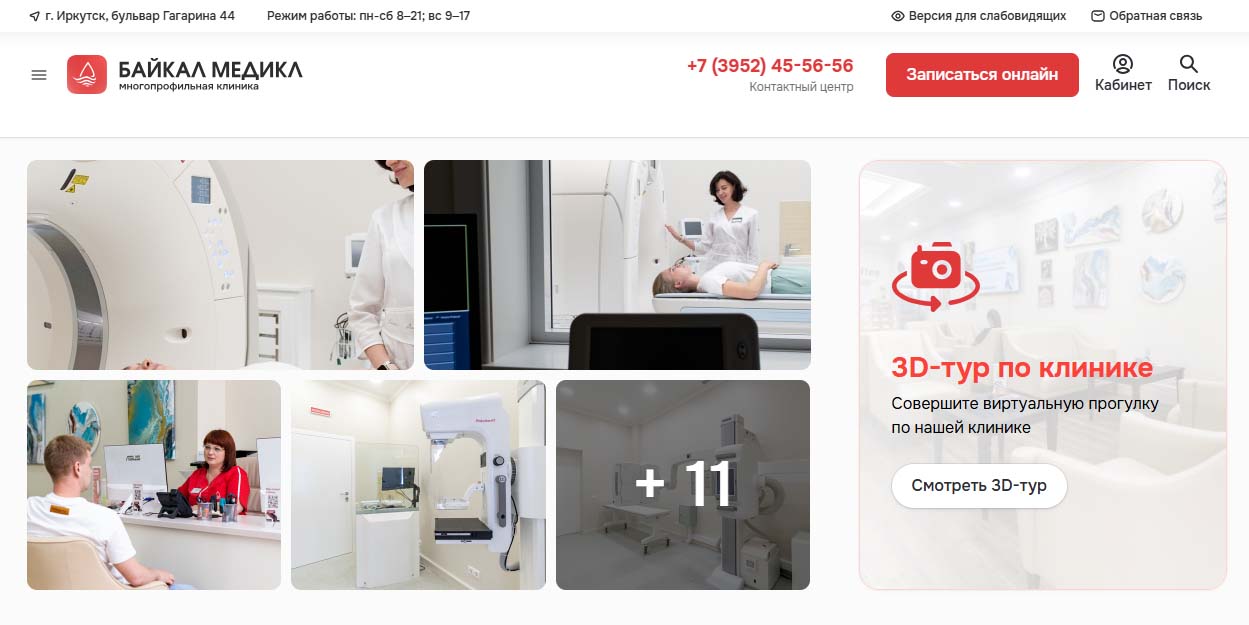 Многопрофильная клиника предлагает широкий комплекс медицинских услуг: консультация специалиста, обследование, забор анализов, постановка диагноза, назначение лечения, дальнейшие рекомендации. Прием ведут 40 узких специалистов, принимаются на обслуживание организации по полисам ДМС. Оформляют справки, больничные листы, санитарные книжки. При клинике действует «Клуб сибирского здоровья», где проходят бесплатные встречи с экспертами.