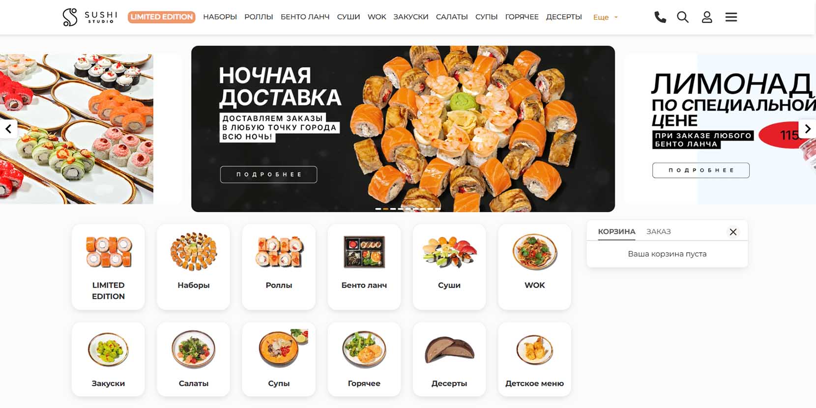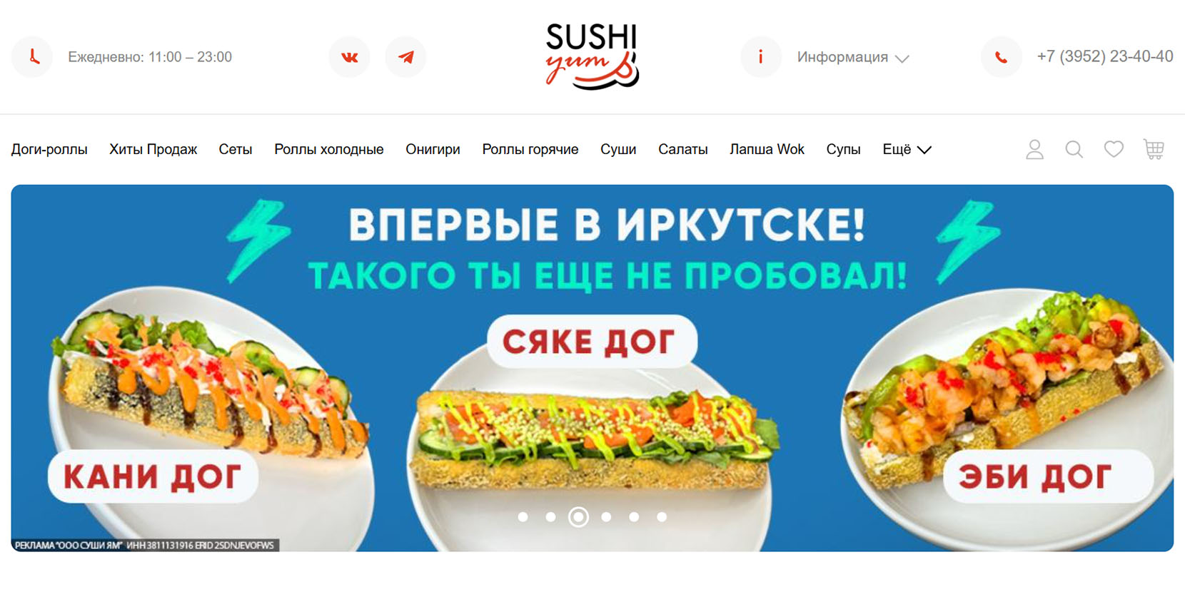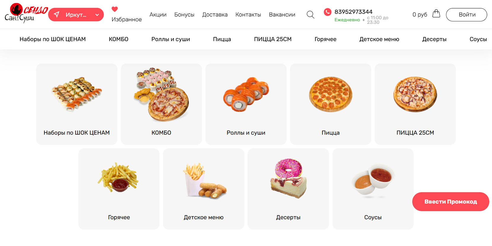 Сеть ресторанов доставки японской кухни: большой выбор суши и роллов, есть отдельное детское меню, хороший выбор пиццы, постоянные акции и скидки. Минимальная сумма доставки — от 800 рублей, более подробные условия доставки в разные районы города нужно уточнять на сайте или у оператора.