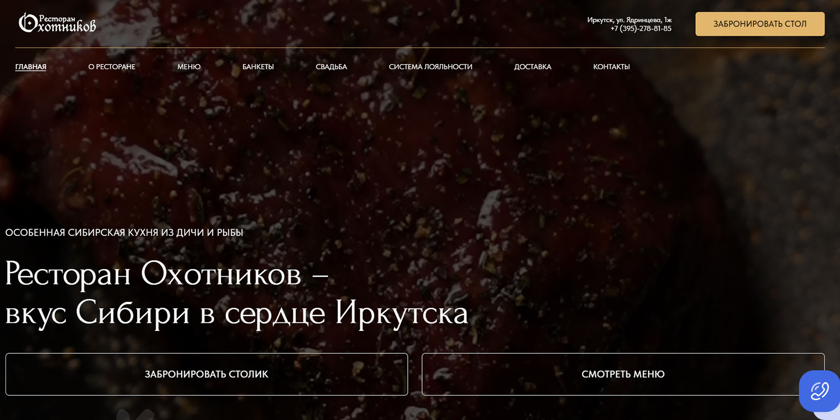 Этот иркутский ресторан предлагает отведать блюда аутентичной сибирской кухни — дичь, птица, рыба и местные деликатесы, такие как строганина или сагудай. Доставка из ресторана работает круглосуточно. Можно заказать домой или в офис блюда из основного меню. Стоимость доставки рассчитывается по тарифам такси. Бесплатной доставка будет при заказе от 3500 рублей (по Свердловскому и Октябрьскому районам, по Байкальскому тракту в пределах 12 км).