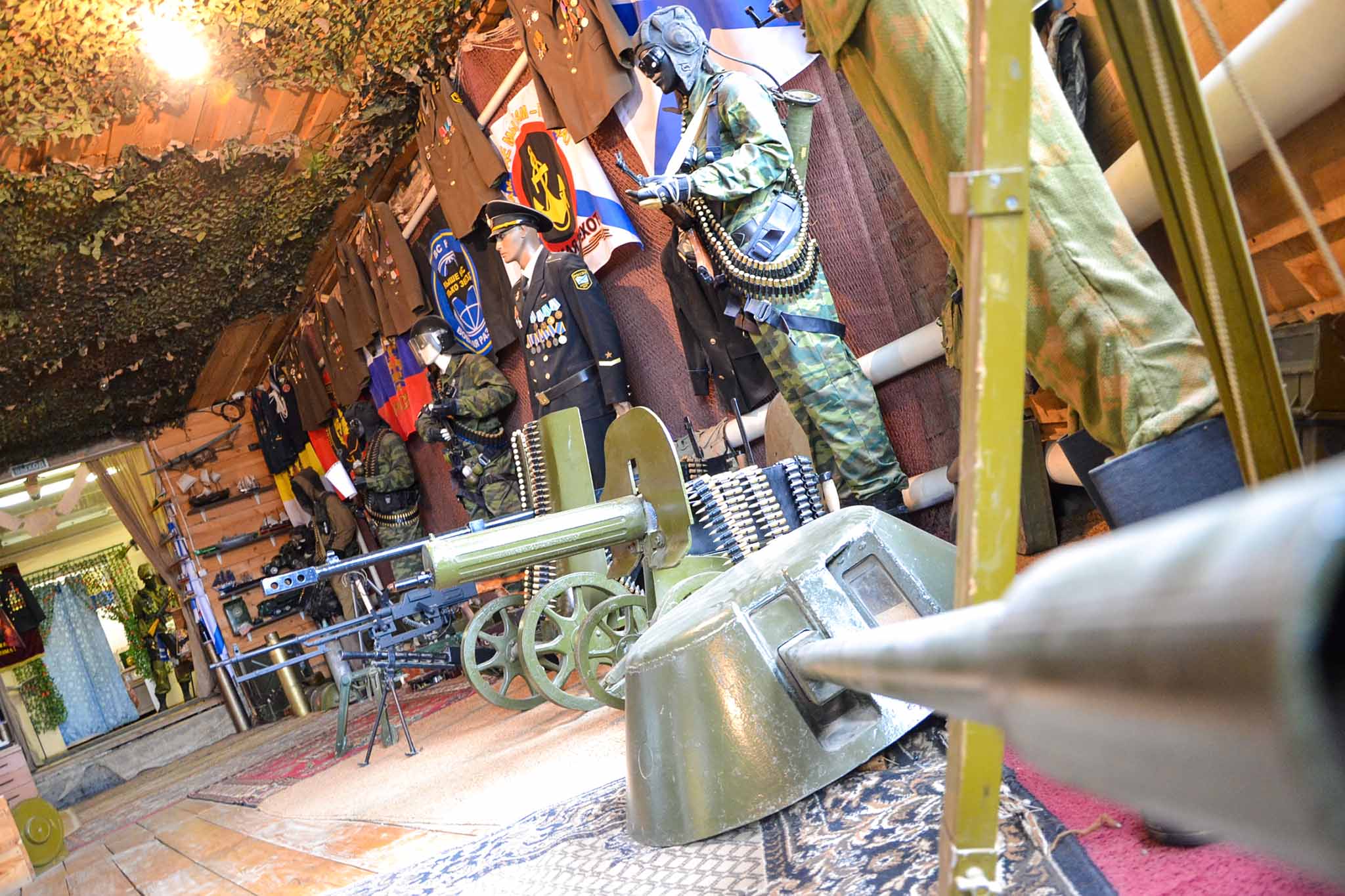 На территории расположено кафе, где предложат армейский суп. Можно покататься на квадроциклах, а в выходные — на настоящем БМП.