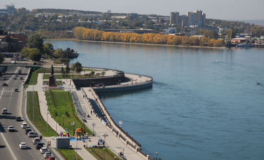 Мы советуем пройтись и по Нижней набережной реки Ангары. Она протянулась на 900 метров и делится на два яруса. Один — проезжая часть, другой — пешеходная зона.
