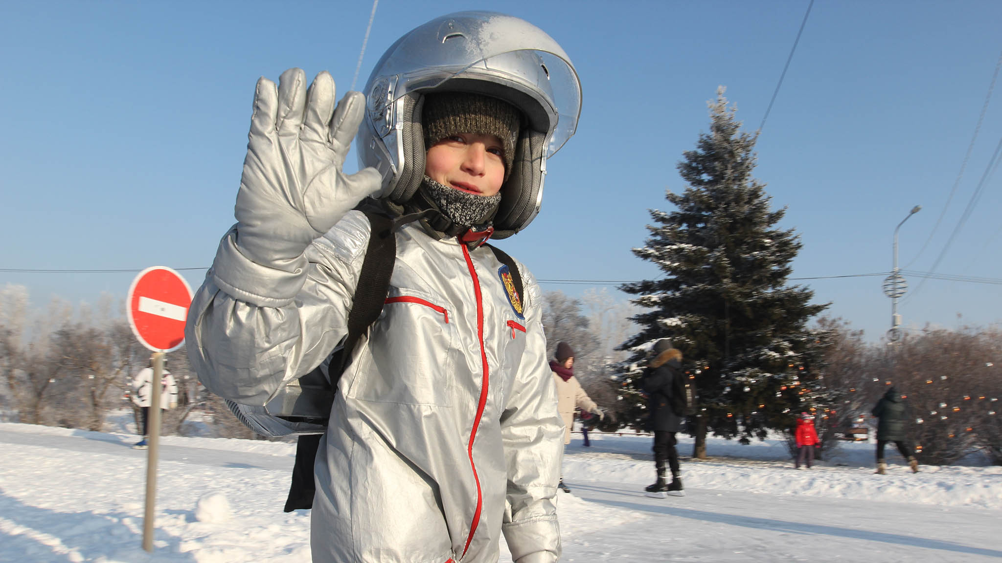 Зимой, к Новому году остров украшается светящимися арками и фигурами. Традиционно заливаются пешеходные дорожки в сторону колеса обозрения и площадка перед кафе — остров превращается в один из самых любимых горожанами каток.