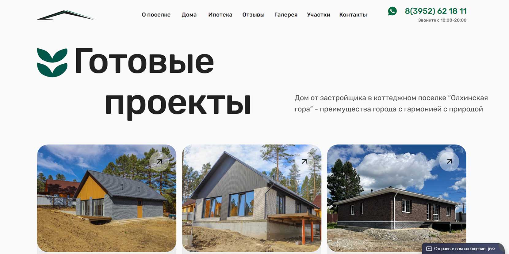 В коттеджном поселке Олхинская гора представлены кирпичные таунхаусы, квадрохаусы и дома, выполненные в едином архитектурном стиле. Земельные участки от 5 соток. Асфальтовые дороги, уличное освещение, проведены коммуникации. Несомненным достоинством поселка является удобство его расположения в 15 км от центра Иркутска по Култукскому тракту, 4 км от мкр. Луговое. Все дома типовой планировки, площадью 70, 90, 160 кв.м. Цена зависит от площади дома, земельного участка и материала исполнения.