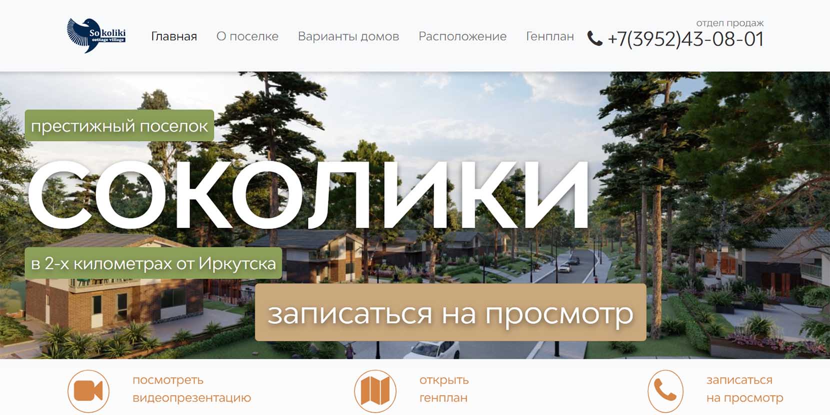 Коттеджный поселок расположен в 2-х километрах от Иркутска. Единая архитектурная концепция объединяет 60 домов на закрытой территории. Рядом находится лесной массив, вода и канализация в каждом доме. Закрытая территория, земельные участки от 4 до 10 соток. Дома в поселке выполнены из автоклавного газобетона и кирпича.