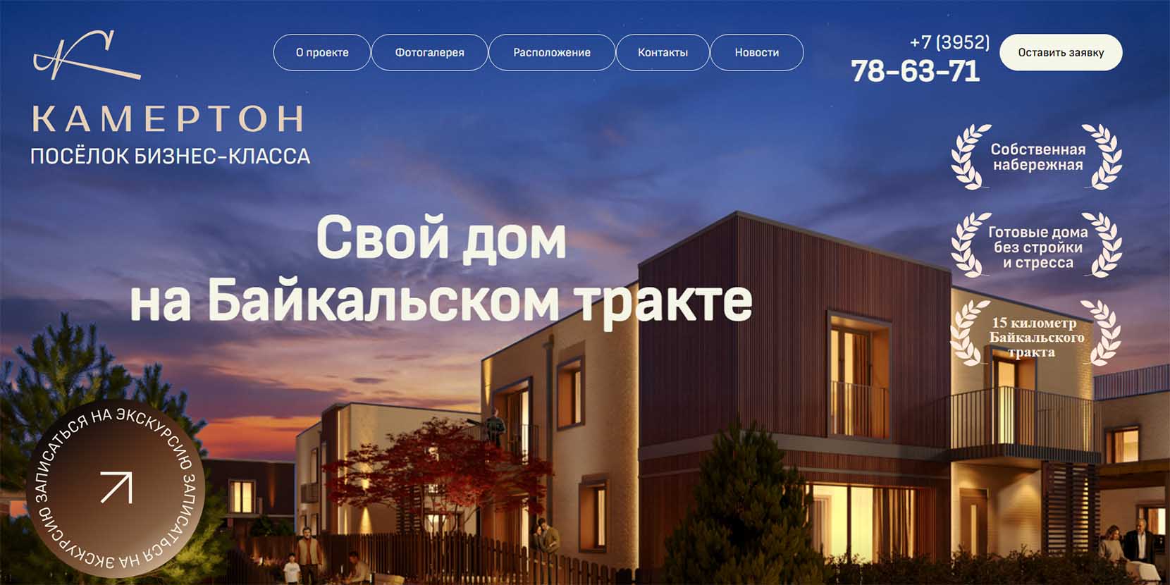 «Камертон» — это клубный поселок бизнес-класса на 15 км Байкальского тракта, в котором 50 домов из железобетона в едином архитектурном стиле. Территория поселка огорожена, на въезде — круглосуточный пункт охраны, о комфорте позаботиться управляющая компания. К домам подведены все необходимые коммуникации — электричество, водоснабжение, канализация. Можно выбрать здания площадью от 135 до 272 кв. м. Здесь сохранены природные особенности места, например, прогуливаясь, можно увидеть сосны до 4-метров высотой. Общественные пространства продуманы – есть парковые зоны, прогулочные маршруты, детская площадка, гостевая парковка, зона для выгула собак. Кстати, до залива с пирсом и беседками всего 5 минут ходьбы, а до школы на школьном автобусе — 10 минут.