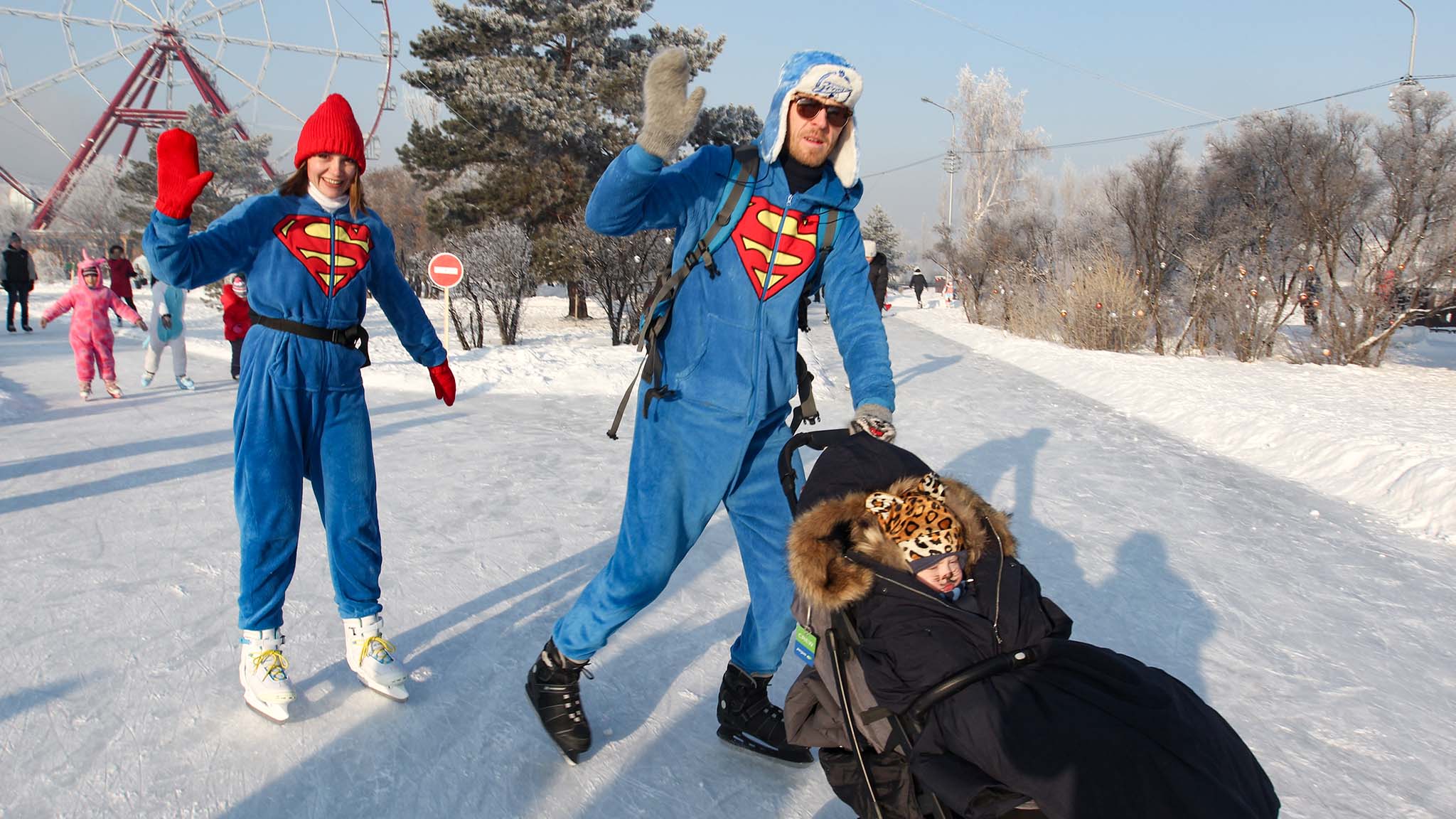Если в новогоднюю ночь вам вдруг захочется на большой каток, то берите коньки и приезжайте рассекать лед на остров Конный. Это самое популярное место для катания в Иркутске, открыто круглые сутки. Здесь также праздничная атмосфера — ледовые скульптуры, переливающиеся огнями гирлянд арки и новогодняя елка. Каток возле ледокола «Ангара» в микрорайоне Солнечном на реке тоже любим горожанами.