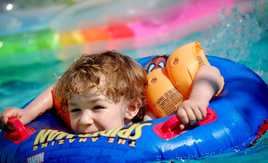 На первый взгляд может показаться, что на территории водного парка расположен только один бассейн. На самом деле он разделен на несколько отдельных зон. Вот, например, большой бассейн, где глубина больше полутора метров, предназначен для плавания взрослых и тех, кто будет съезжать с винтовой горки. По соседству с ним — «лягушатник» для малышей. Там глубина не больше полуметра.