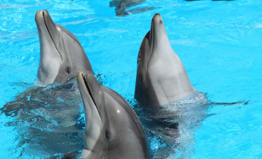 А затем на смену неуклюжим морским котикам приходят черноморские афалины. В этот момент начинается главное зрелище. Дельфины делают сальто в воздухе, выполняют синхронные прыжки через обруч, танцуют под музыку на хвосте и даже сами поют.