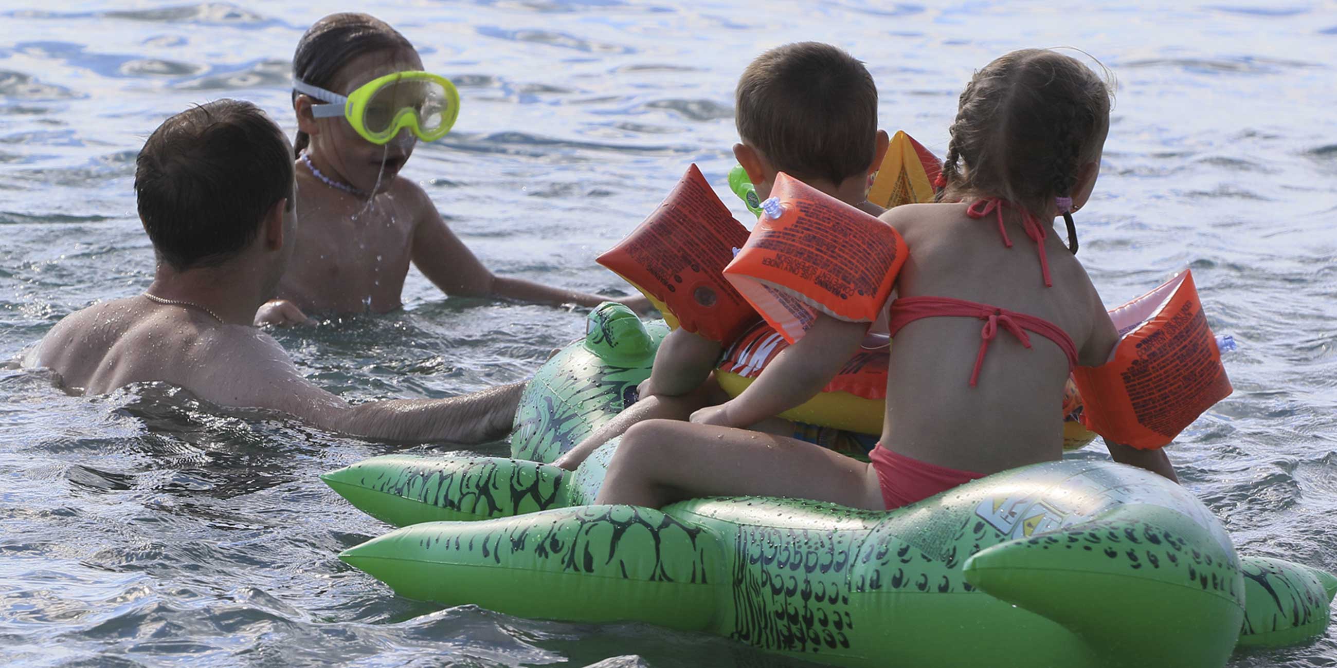 Пляж чистый и ухоженный, с развитой инфраструктурой. Здесь полно водных развлечений: можно покататься на «банане», «таблетке», катамаране или водном мотоцикле. На пляже мелкая галька, но, чтобы было удобно загорать, в аренду выдают лежаки и зонтики.