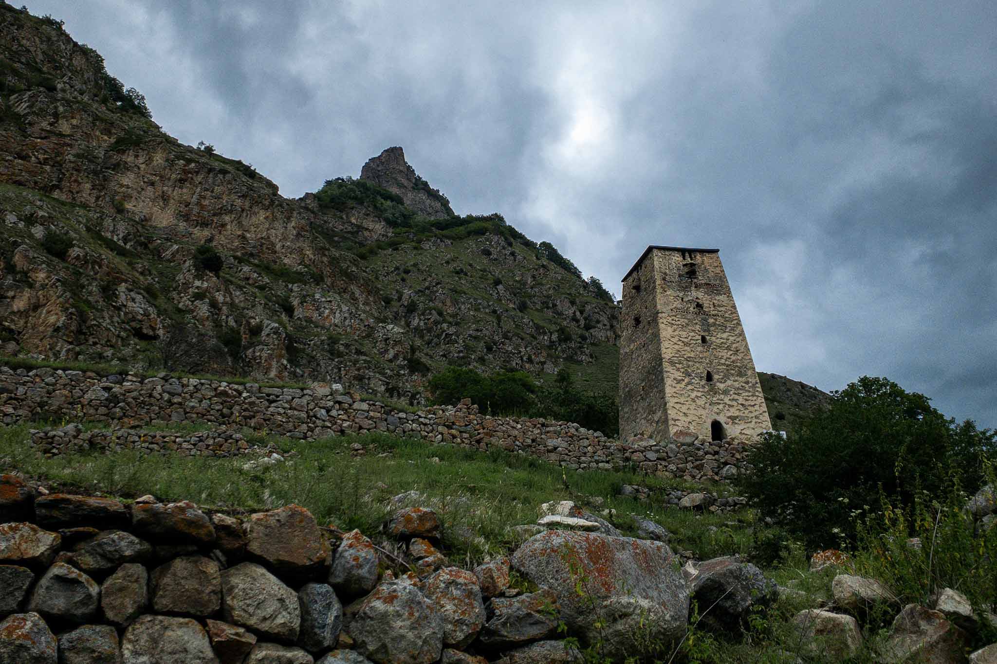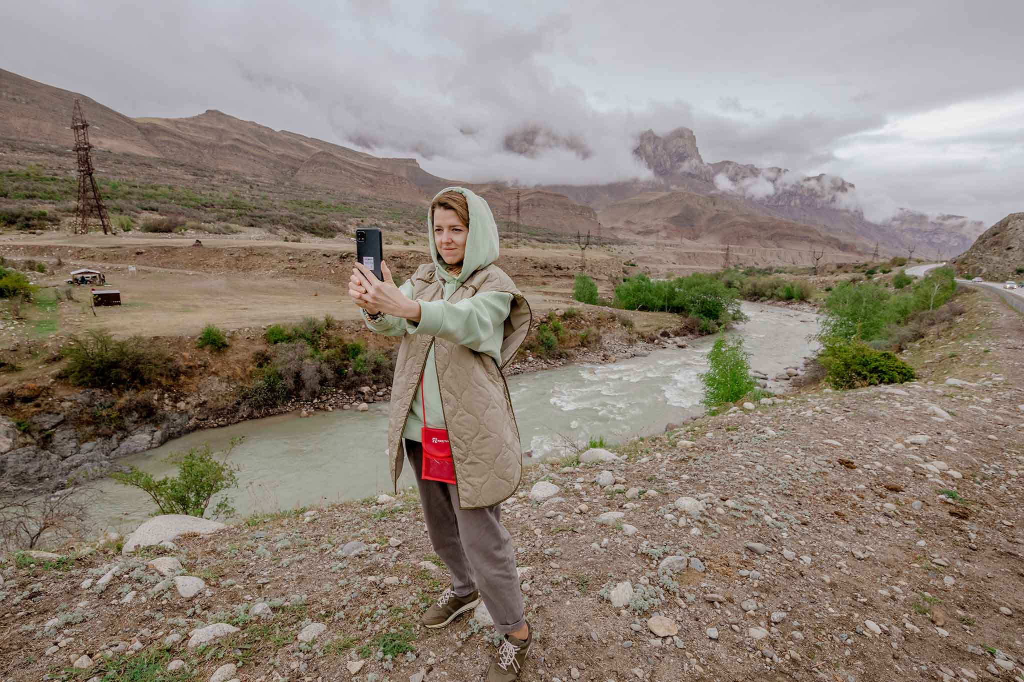 От Нижнего Голубого озера начинается Черекская теснина. Приготовьтесь к острым ощущениям, прогуливаясь по узкой каменной тропе, проложенной вдоль обрыва в ущелье Зылги-Тар. Теснина будто сжимает пространство между небом и землей. С одной стороны — каменная стена размером с небоскреб, с другой — бурная река в сотнях метров внизу. Она протекает у подножия гигантской скалы, за которой виднеется Главный Кавказский хребет.