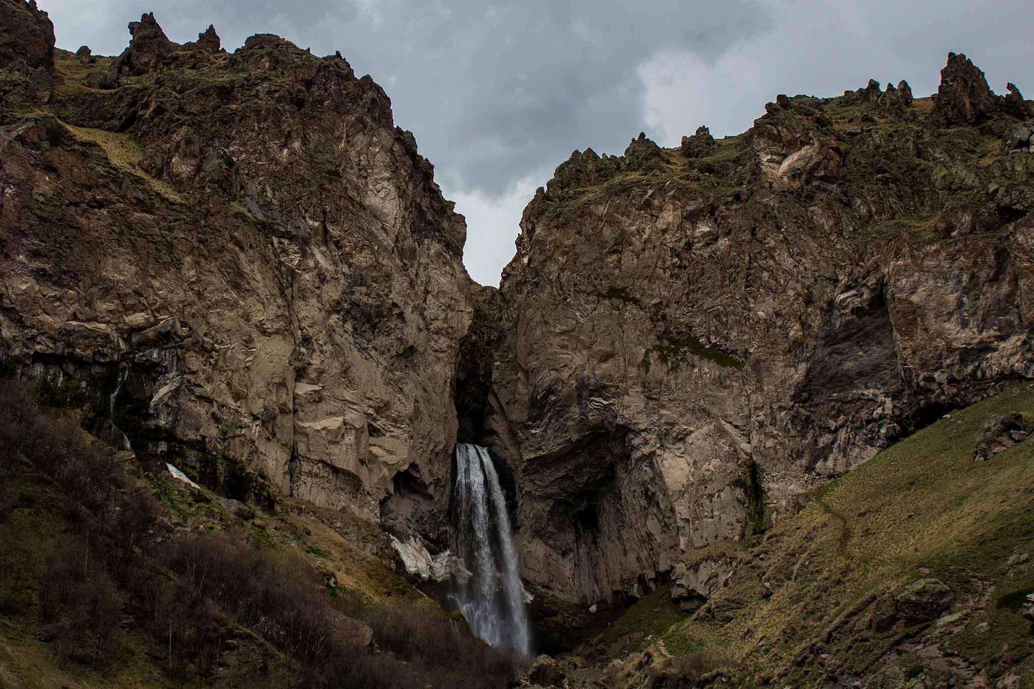 Путь к знаменитому водопаду Султан и небольшим бассейнам с нарзаном займет около 2 часов, но вы их даже не заметите. Тут открываются такие виды, что сердце замирает: плато Канжол, отроги Главного Кавказского хребта, «парящая скала», смотровые площадки с видом на Эльбрус — недаром это место прозвали русской Исландией. Если не боитесь трекинга, можно пройти до поляны Эммануэля.