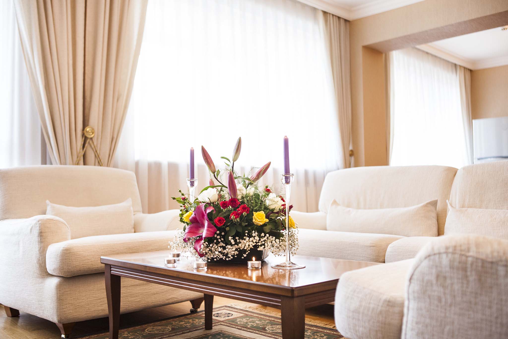 Отель предлагает широкую линейку номеров: от одноместного «стандарта» до трехкомнатного «королевского люкса» площадью свыше 80 кв. метров с двумя санузлами. Всего — 86 номеров разных категорий, а потому каждый найдет вариант, отвечающий его требованиям и цели пребывания.