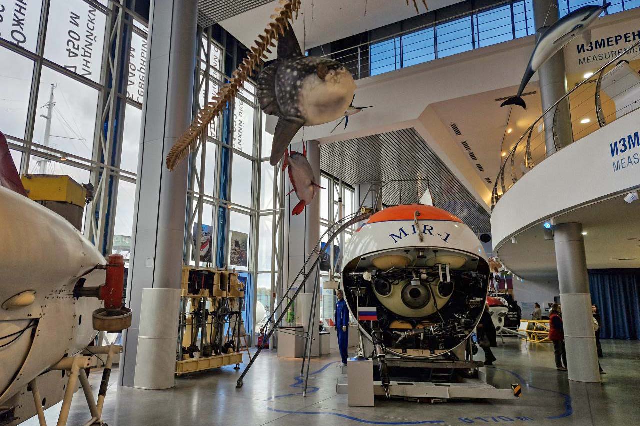 Тут можно увидеть и экспонаты, рассказывающие об истории судоходства, и представляющие фауну морских глубин — от полярных вод до теплых южных морей. Есть даже небольшой океанариум с экзотическими рыбами. Среди филиалов музея пришвартованные рядом научно-исследовательские суда «Витязь», «Космонавт Виктор Пацаев», подводная лодка, гидросамолет, а также футуристический новый корпус музея «Планета Океан», представляющий собой гигантский голубой шар, похожий на модель планеты.