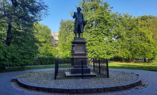 Один из новых арт-объектов Калининграда установлен на месте, где любил отдыхать во время прогулок великий философ. Это скамья из красного гранита, на которой лежит треуголка и свиток, а рядом прислонена трость — неизменный аксессуар зажиточных горожан и аристократов XVIII века. Скамья находится на территории Музея Мирового океана.