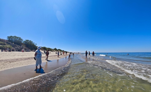 Лето — конечно, время пляжного отдыха. Хотя Балтийское море всегда прохладное и не прогревается, как Черное, тут все равно купаются в июле. Лучшие пляжи находятся в поселках Лесной и Морское. В визит-центре «Куршской косы» предлагают экскурсию на прогулочном катере по заливу.