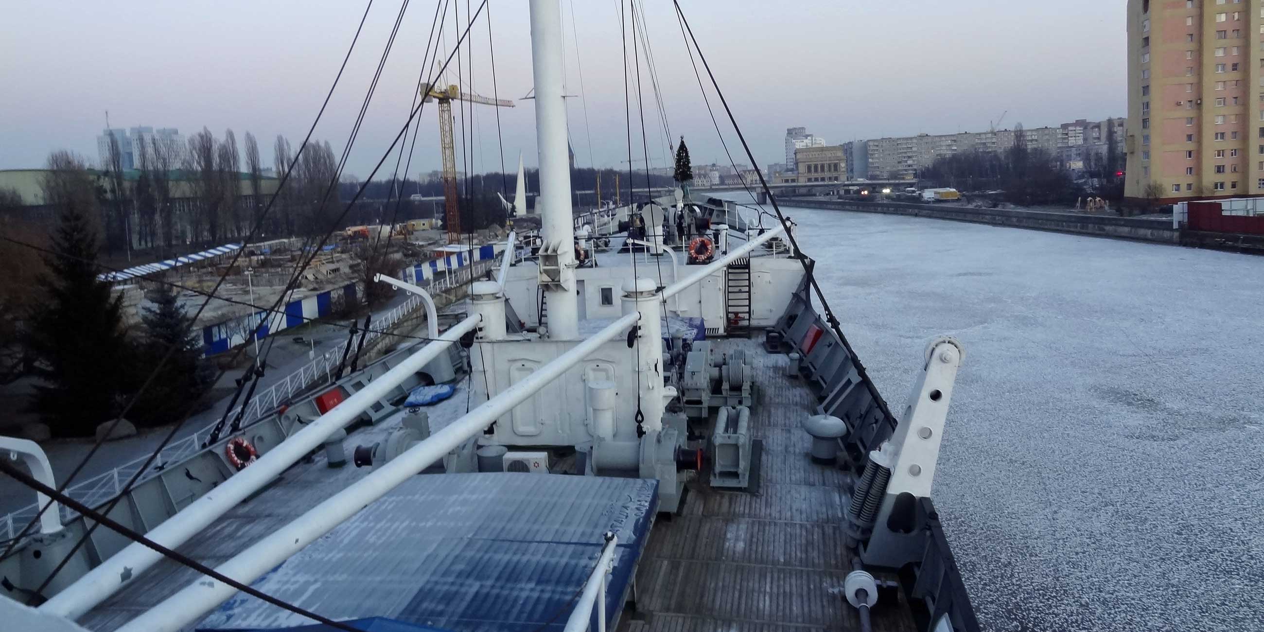 Хорошие снимки получаются с маяка, расположенного в главном корпусе музея. Можно запечатлеть панораму набережной исторического флота, сфотографировать знаменитый двухъярусный мост Кенигсберга — памятник истории и культуры начала 20 века, один из самых узнаваемых «киношных» образов Калининграда. Если посмотреть в противоположную сторону, то там не менее впечатляющий вид — Кафедральный собор и здание Кенигсбергской биржи, похожее на дворец венецианских дожей.