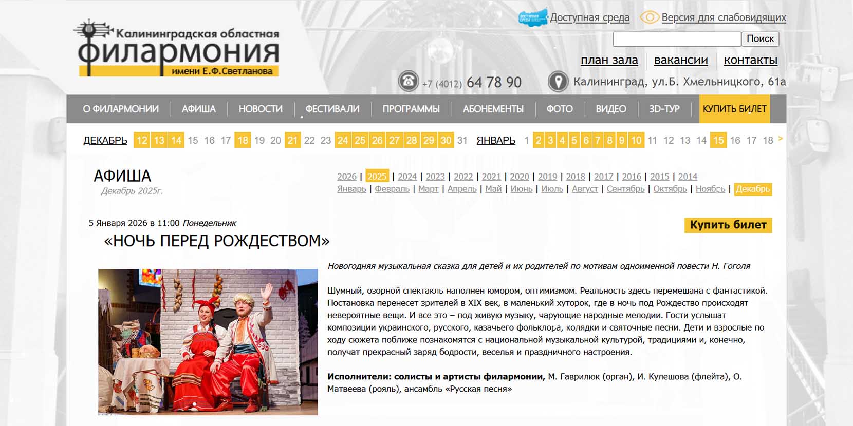 Новогодняя музыкальная сказка «Ночь перед Рождеством»