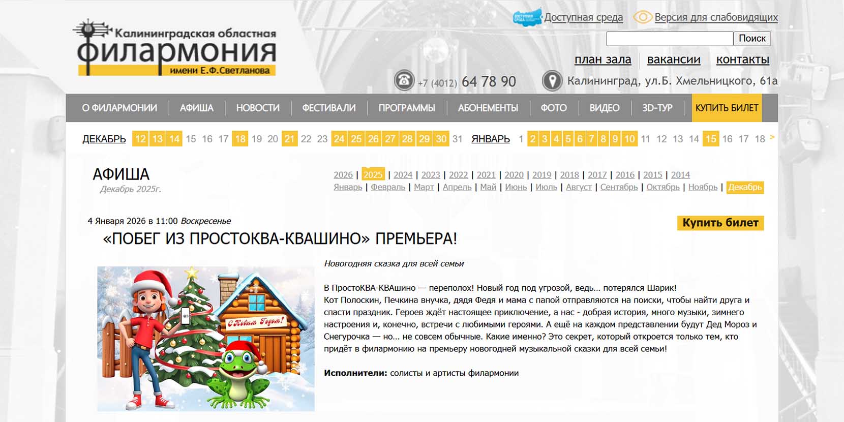 | Даты | 25-27 декабря 2025 года, 6-8 января 2026 года |