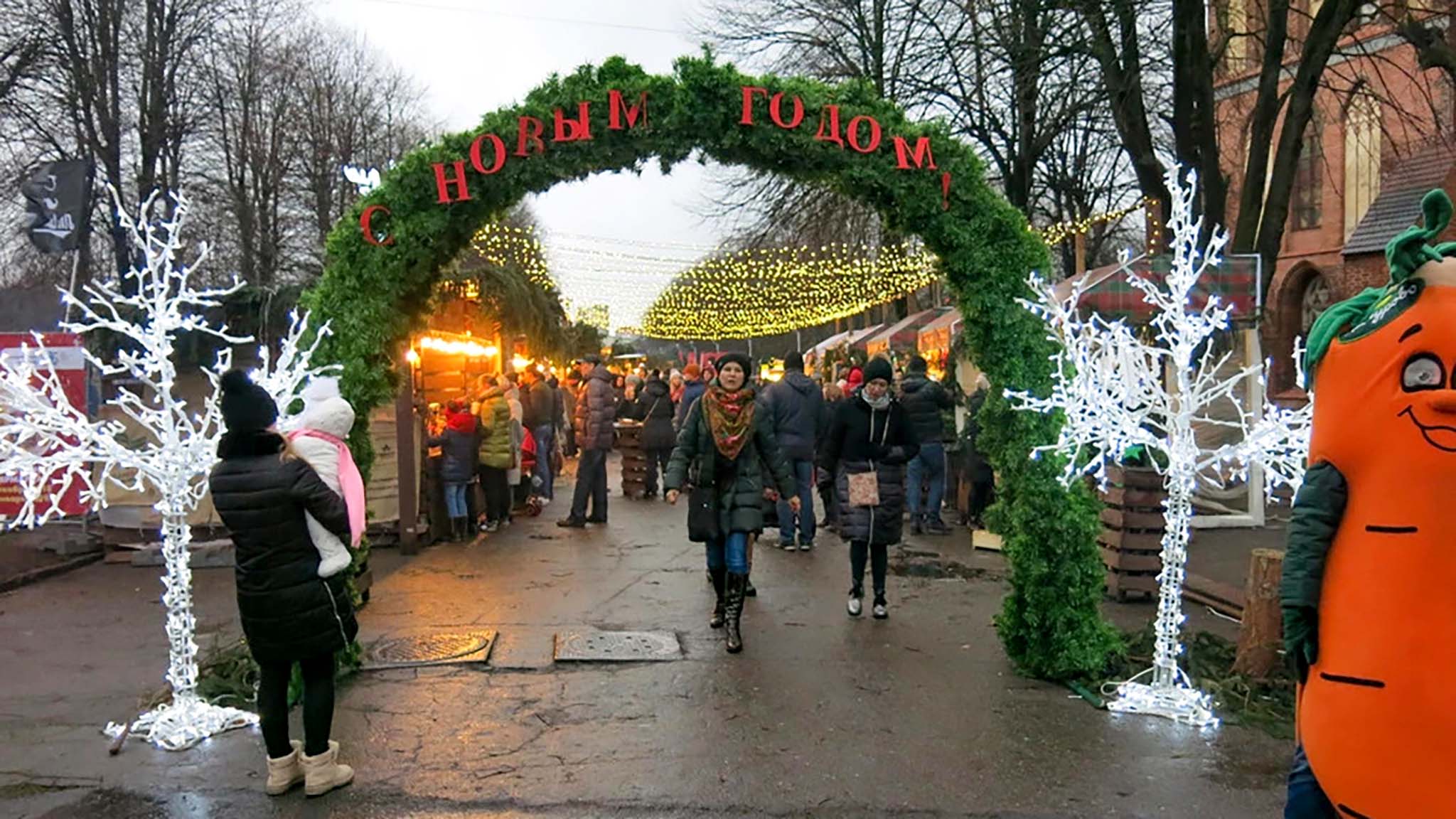 Неотъемлемой частью праздника в городе, впитавшем в себя микс из европейских и русских традиций, являются ярмарки. Одна из ведущих открывается в сквере Мать-Россия, возле одноименного монумента (в разные годы ее открывали на Верхнем озере, площади Победы и на острове Канта перед Кафедральным собором) и будет работать с 12 декабря по 11 января. Здесь можно приобрести традиционные калининградские сувениры и фастфуд — да не простой, а деликатесный, причем относящийся к одной из двух культур. Так, гости могут попробовать традиционные блюда кенигсбергской кухни (клопсы, цеппелины, марципаны), либо насладиться дарами Балтики (килькой, селедкой, морепродуктами), либо вовсе урвать что-то необычное из ближних стран Европы, например, литовский торт Шакотис.